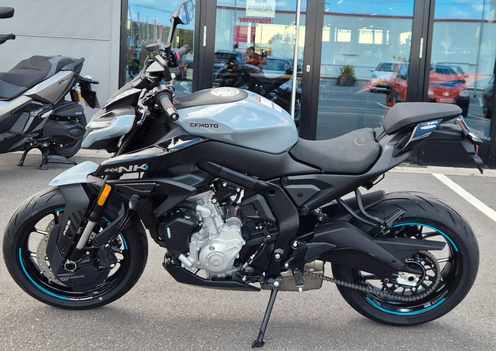 Kraftvolle Dreizylinder-Power, lineare Beschleunigung und extrem agiles Handling: Die neue CFMOTO 675NK ist das perfekte Naked Bike fu?r alle Liebhaber der sportlich ambitionierten Gangart. Dank modernster Technologie und einer kompakten Ergonomie liefert der neue Streetfighter eine beeindruckende Performance und zaubert dir in jeder Kurve ein breites Lächeln unter den Helm. Kantig, kraftvoll, kompromisslos - die 675NK ist ein Naked Bike mit Attitüde. Ihre aggressive Linienführung, die sportliche Sitzbank und die muskulöse Front machen sofort klar: Dieses Bike meint es ernst. Denn die 675NK kombiniert urbanen Style mit echter Racing-DNA - bereit, den Asphalt zu dominieren. Mit 674 cm Dreizylinder, satten 90 PS und 68 Nm Drehmoment ist die 675NK alles andere als zurückhaltend. Das voll einstellbare KYB-Fahrwerk, radial montierte 300-mm-Doppelscheibenbremsen und das präzise Handling garantieren Performance pur. Dazu kommt modernste Ausstattung, die deinen Puls hochhält.