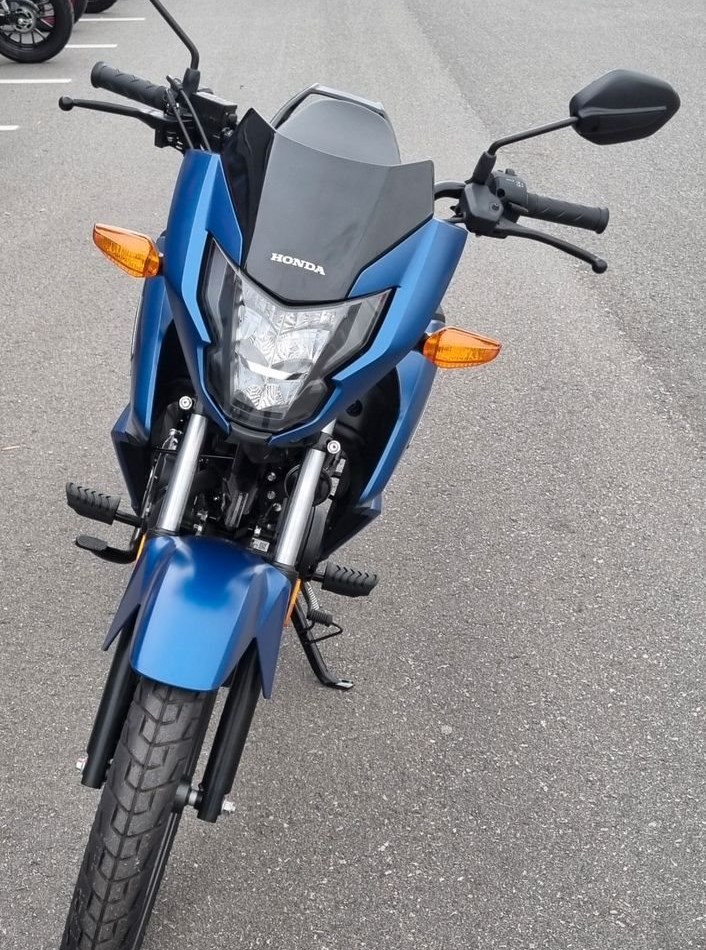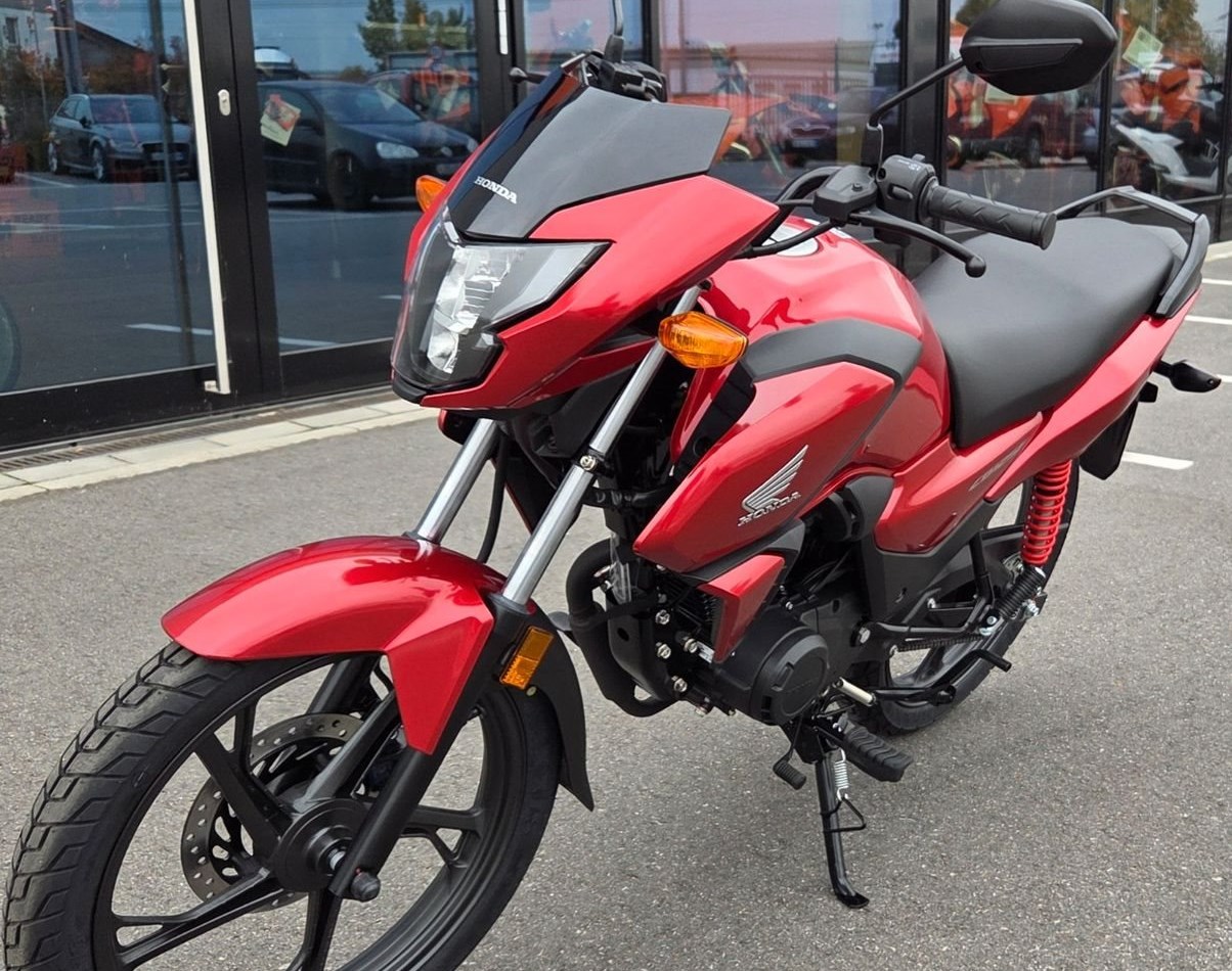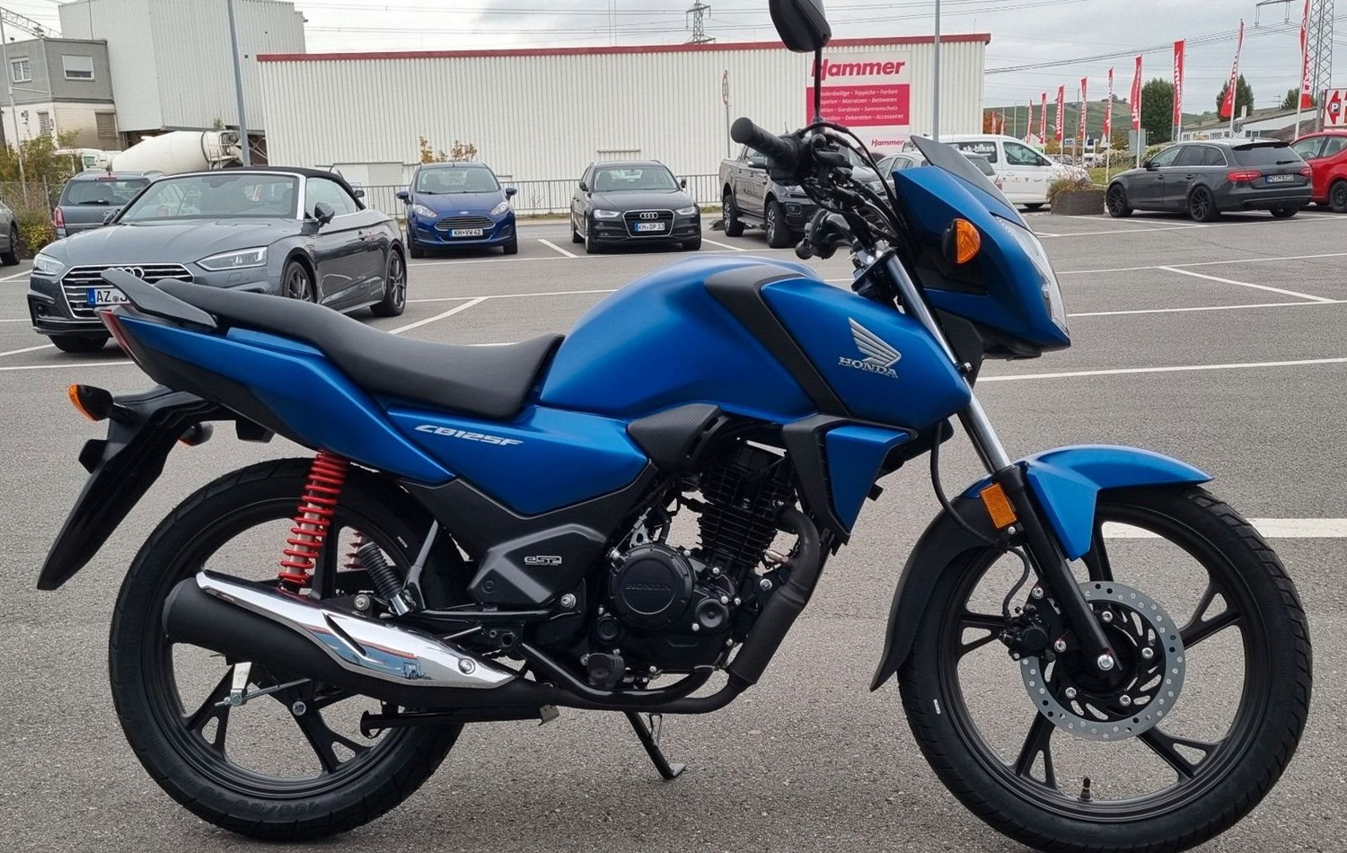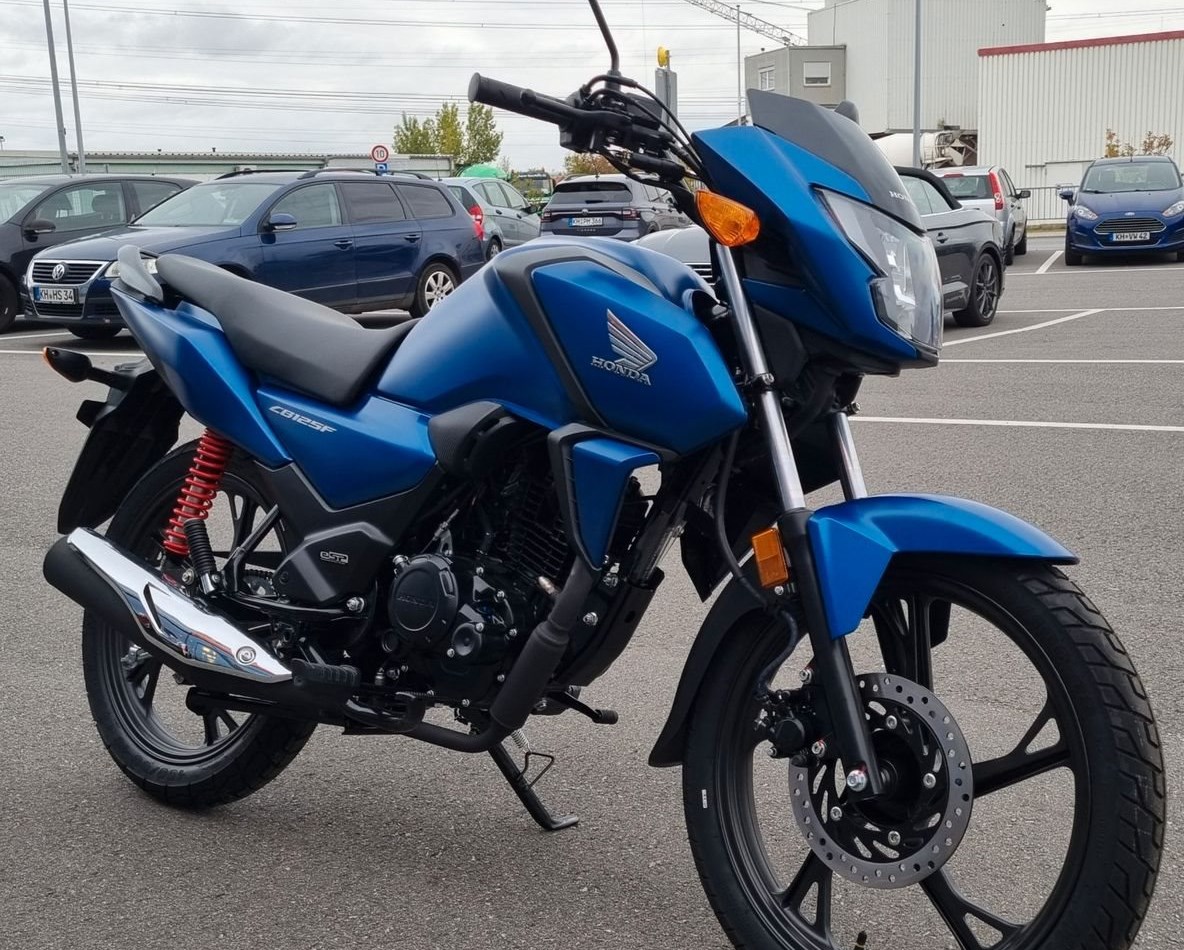 Schärfer. Smarter. Vernetzter.Die CB125F wurde von Grund auf neu gestaltet und hat dabei eine überarbeitete Front- und Heckverkleidung sowie neue LED-Scheinwerfer erhalten, die ihr ein moderneres Erscheinungsbild verleihen. Der neue 4,2-Zoll TFT-Bildschirm ist mit Bluetooth ausgestattet, sodass du Honda RoadSync nutzen kannst, um unterwegs immer auf dem Laufenden zu bleiben. Smart Power. Große Reichweite. Wenig Abfall.Das luftgekühlte e-SP Triebwerk (enhanced Smart Power) mit einem Zylinder, zwei Ventilen und PGM-FI-Kraftstoffeinspritzung ist nicht nur robust, sondern auch clever. Er bietet eine intelligente Beschleunigung und eine beeindruckende Kraftstoffeffizienz von 1,4 l/100 km mit einer möglichen Reichweite von bis zu 800 km zwischen zwei Tankfüllungen.