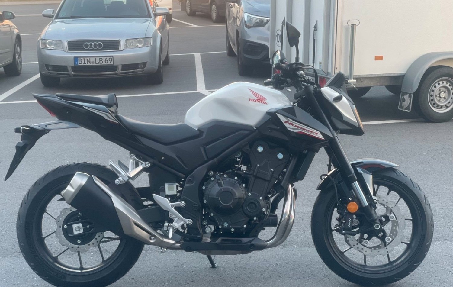 Du suchst ein ganz neues Fahrerlebnis? Dann ist die neue CB500 Hornet genau richtig für dich. Aggressives Streetfighter-Design mit echten Hornet-Genen. Mir dem dynamischen A2-konformen Zweizylindermotor und dem agilen, hochwertigen Chassis ist dieses Motorrad wie geschaffen für die Stadt oder kurvigen Landstraßen. Die herausragende Ausstattung, darunter ein 5-Zoll TFT-Farbdisplay, Honda RoadSync mit Turn-by-Turn-Bildschirmnavigation und Hinterrad-Gripregelung per HSTC, sorgt für Entertainment, Kontakt und Sicherheit. Join The Hive. Für eine Besichtigung oder Probefahrt kontaktieren Sie uns gerne.