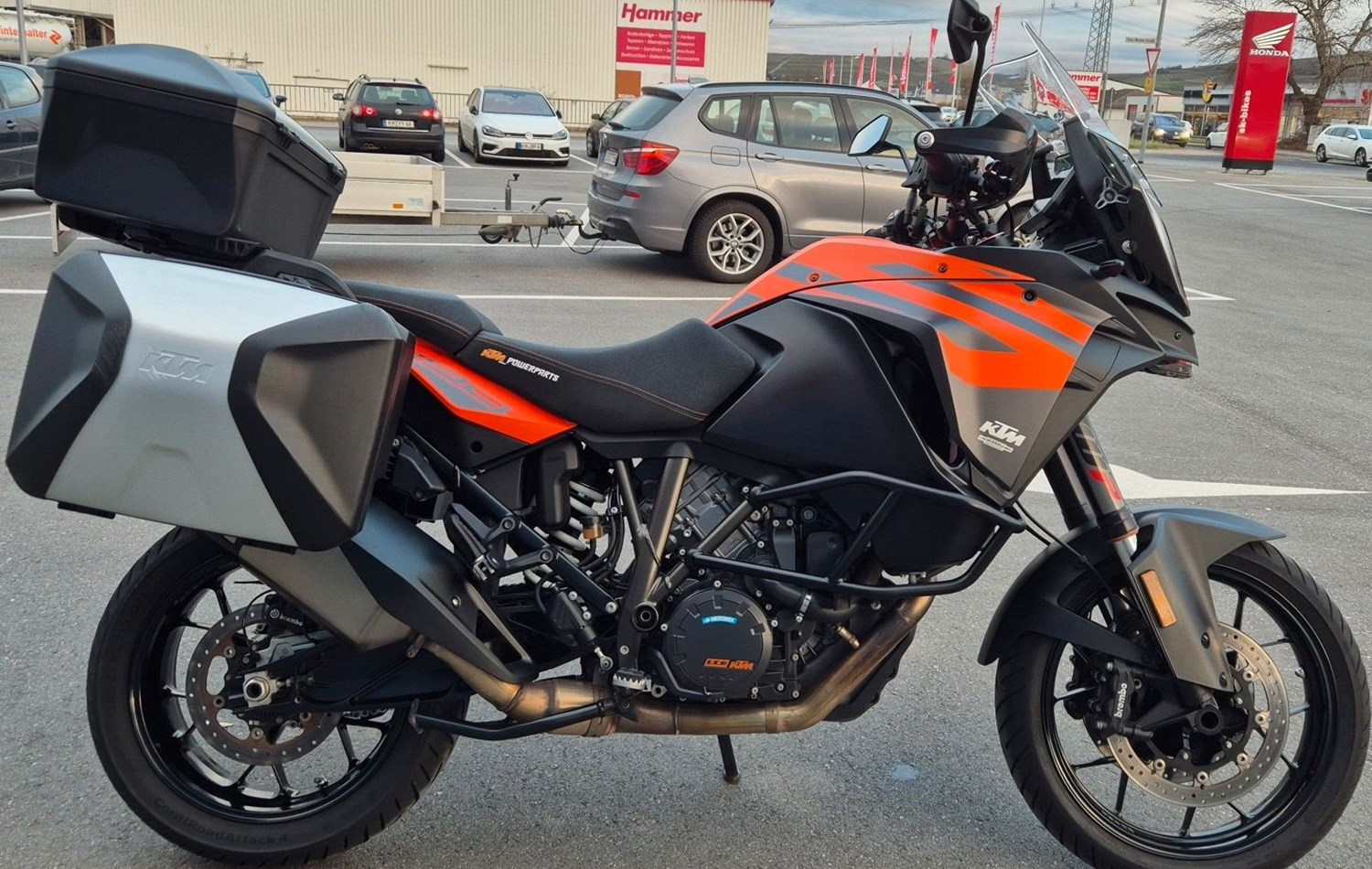 Koffersatz, Topcase, Sturzbügel, Hauptständer, elektrisches Fahrwerk, Powerparts Sitzbank, Griffheizung, Sitzheizung Leichter Umfaller rechts Für eine Besichtigung oder Probefahrt kontaktieren Sie uns gerne.