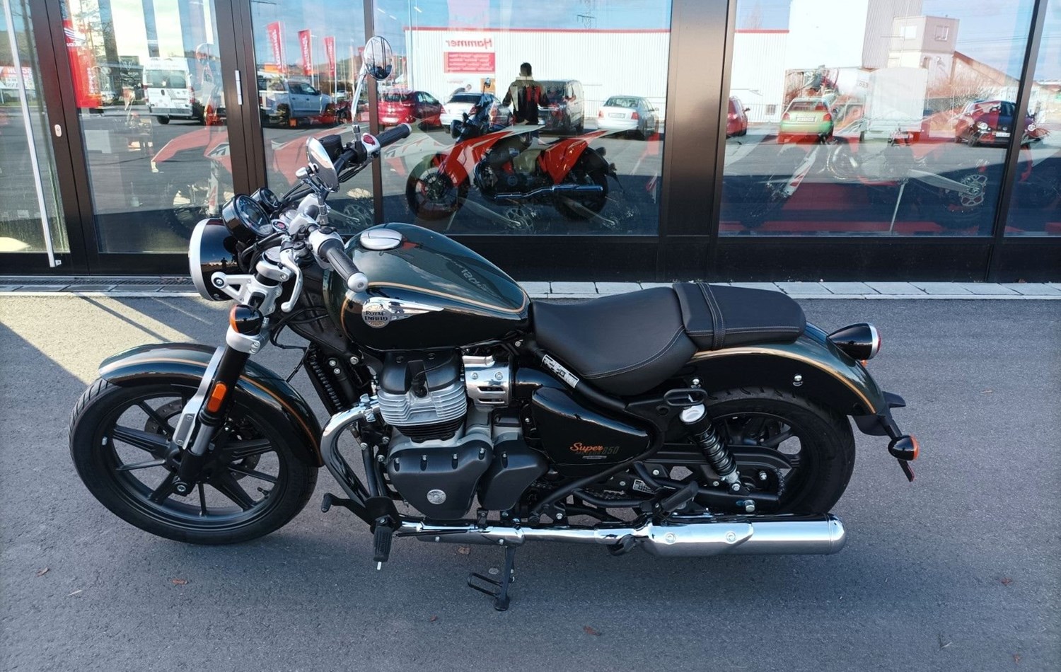Das Herzstück der Super Meteor 650 ist unser ikonischer Parallel-Twin-Motor, der nahtlose Gangwechsel, eine starke Beschleunigung im unteren Drehzahlbereich und eine ruckfreie, gleichmäßige Gasannahme gewährleistet. Für eine Besichtigung oder Probefahrt kontaktieren Sie uns gerne.