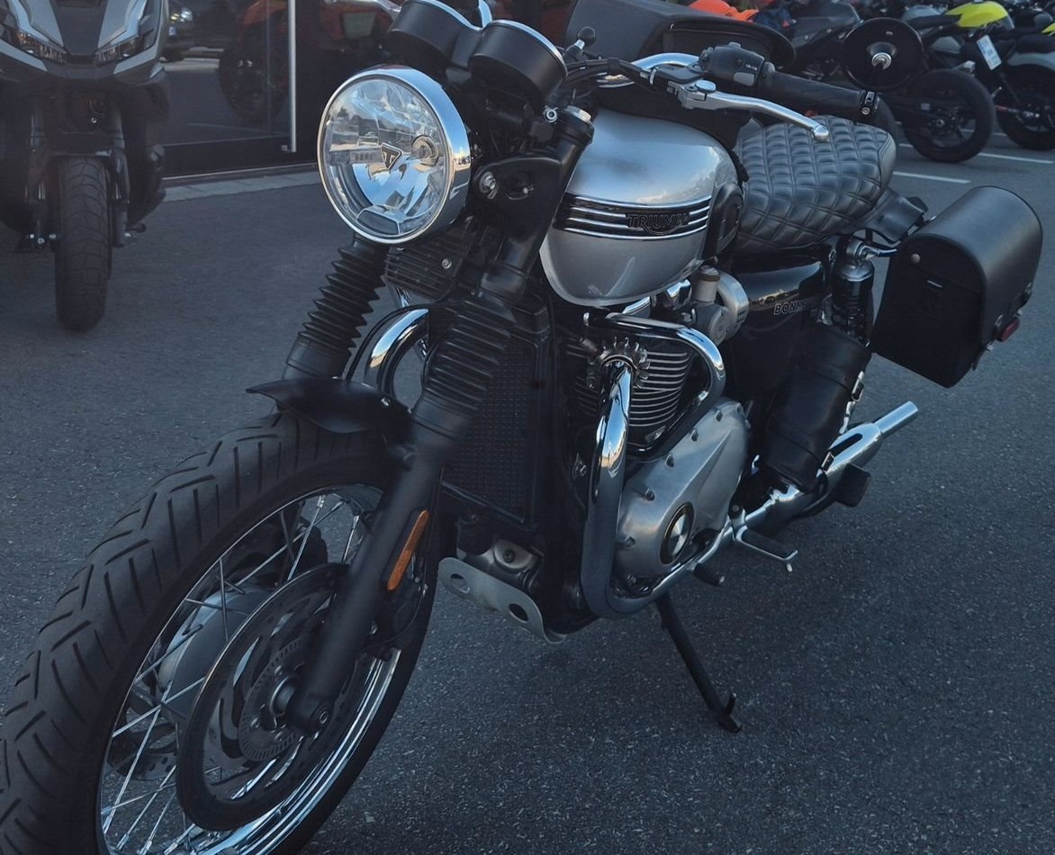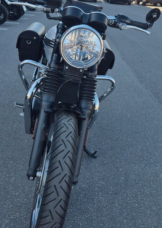 Norman Hyde Endschalldämpfer (Original liegt bei), Satteltaschen, Lenkerendspiegel, Custom Sitzbank, Hauptständer, Sturzbügel, Heckumbau, Scott-Oiler, Tankpad+Kniepads, Mini LED-Blinker vo./hi., 12V Anschluss, Rahmentasche, Kurzer Kotflügel vo./hi., verchromter Ventildeckel, Metall Triumph Tanklogos, Öleinfüllschraube CNC, Alu Motorschutz