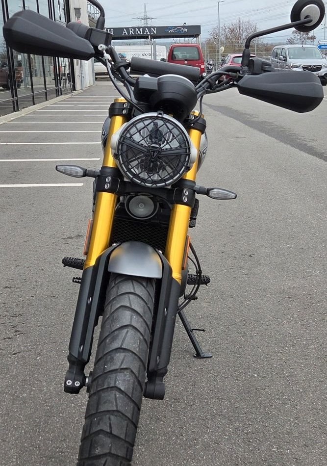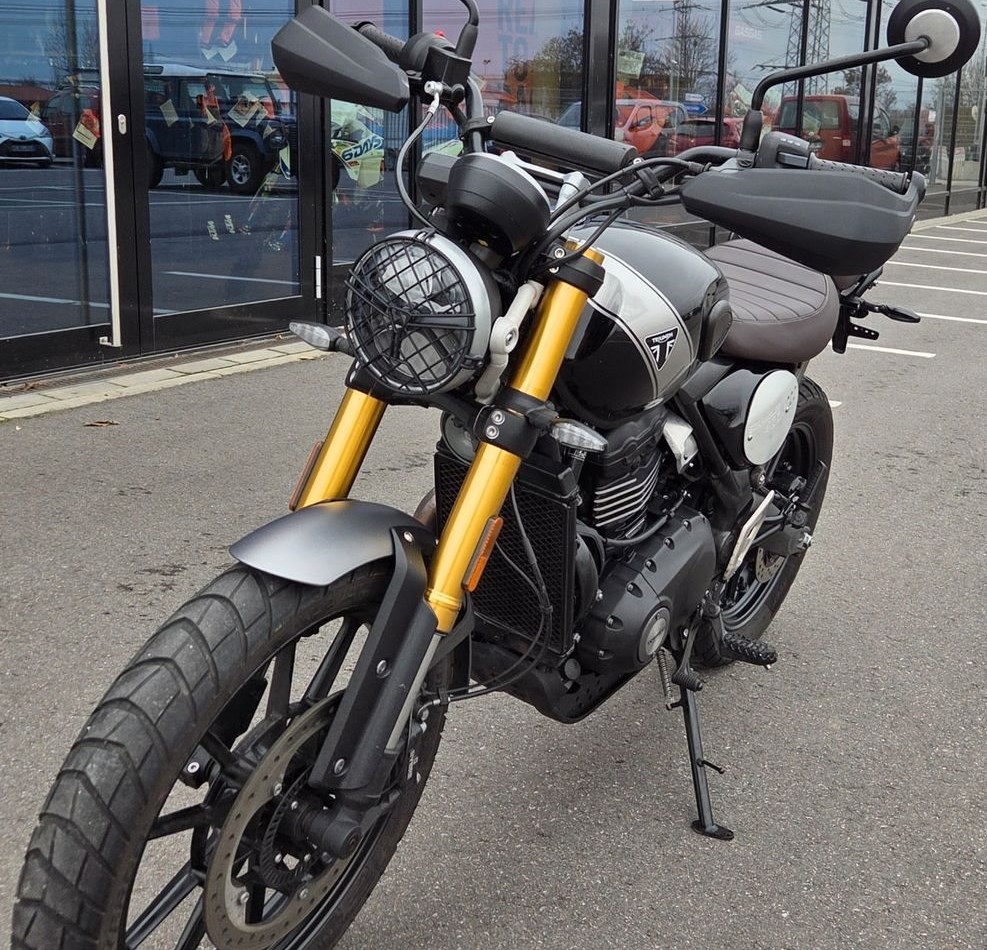 Die Scrambler 400 X ist ein erfrischender Neuzugang in der Scrambler-Familie von Triumph und eröffnet einer ganz neuen Generation das Fahrerlebnis der modernen Klassiker von Triumph.Mit ihrer zeitlosen Scrambler-Silhouette und der unverwechselbaren, gerippten Sitzbank bietet die Scrambler 400 X den unverkennbaren Stil einer Triumph, kombiniert mit hochwertiger Verarbeitung und erstklassiger Ausstattung voller moderner Fahrtechnologie.Der in Hinckley konstruierte Einzylindermotor erzeugt den für Triumph typischen charaktervollen und reaktionsschnellen Antrieb mit klassenbester Leistung und Drehmoment.Die souveräne Sitzposition mit breitem Lenker sorgt in Verbindung mit dem Scrambler-spezifischen Fahrwerk für Komfort auf der Straße und im Gelände.Die hochwertige Aufhängung mit 150 mm Federweg und der Doppelkolben-Bremssattel gewährleisten ein präzises, agiles und intuitives Handling und helfen sowohl neuen als auch erfahrenen Fahrern, das volle Potenzial der Scrambler 400 X voll auszuschöpfen.