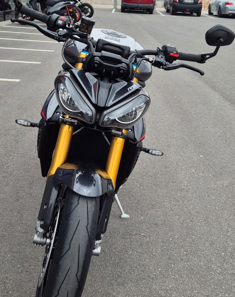 Die hochwertigen Federwerkselemente mit dem semiaktiven Öhlins-Fahrwerk, die Bremboanlage mit Brembobremszylinder, der Topklasse Quickshifter und das Prachtstück an Motor, der in der Triumph Speed Triple 1200 RS verbaut ist, machen aus ihr ein Motorrad das den Namenskürzel „RS“ nicht aus Marketinggründen trägt, sondern weil es sich ihn verdient hat. Einzig und allein der mangelnde Windschutz hat mir zu schaffen gemacht, denn jeder der schon über 200 km/h auf einem Nakedbike gefahren ist, weiß wie anstrengend das ist, auch wenn man sich so klein wie möglich macht. Wer also vor hat sie öfters auf der Rennstrecke zu bewegen, der könnte in eine Form von Windschutz investieren.