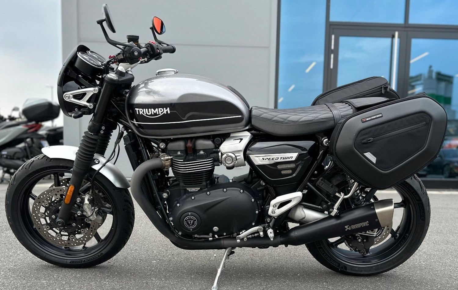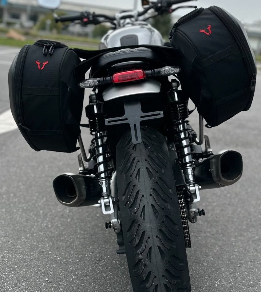 Akrapovic Auspuff, Lenkerendspiegel, Flayscreen, SW-Motech Softbags, Tankpad, Kurzer Kennzeichenhalter
