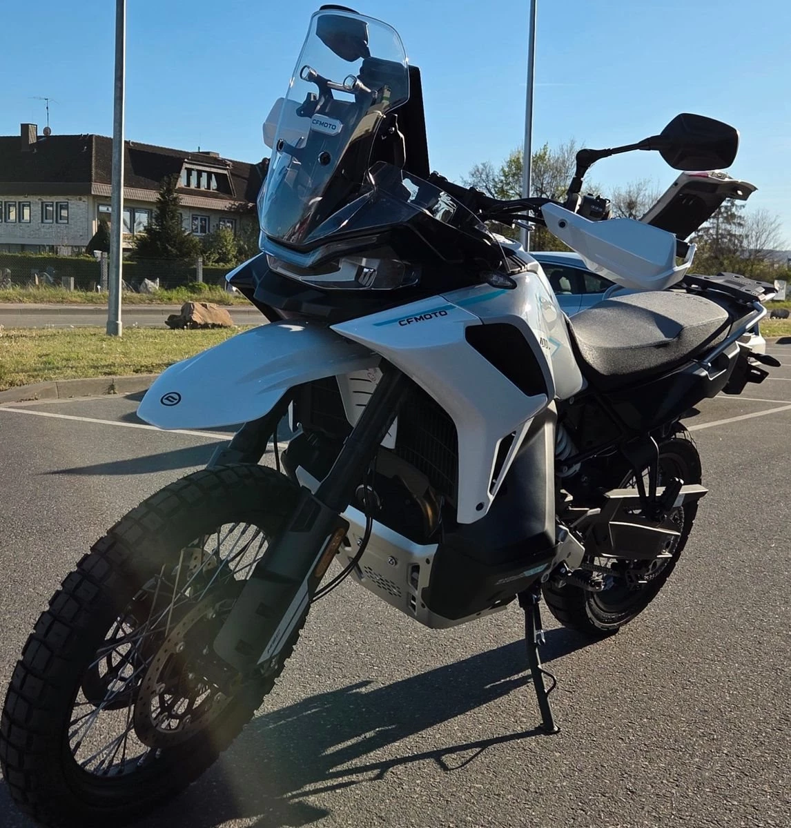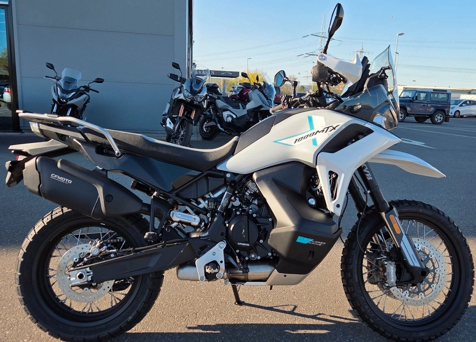 Die CFMOTO 1000MT-X ist ein neues Adventure-Flaggschiff, das auf der EICMA 2025 vorgestellt wurde. Sie bietet einen 946-ccm-Zweizylindermotor mit ca. 111-113 PS (83 kW83 kW83 kW), 105 Nm Drehmoment und ist für den Einsatz auf und abseits der Straße konzipiert. Ausgestattet mit 21/18-Zoll-Speichenrädern, voll einstellbarem KYB-Fahrwerk (230/190 mm Federweg) und einem 22,5-Liter-Tank, ist sie auf Langstrecken ausgelegt. Zur modernen Ausstattung gehören ein 8-Zoll-TFT-Display, Bosch-Kurven-ABS, Traktionskontrolle, Quickshifter und Tempomat.
