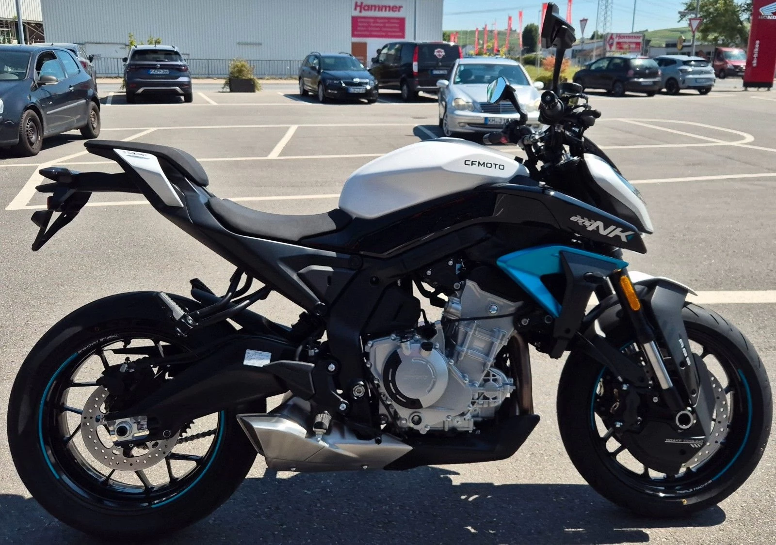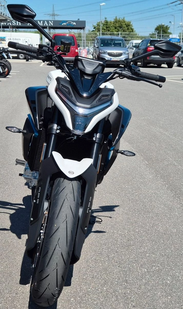 Kraftvolle Dreizylinder-Power, lineare Beschleunigung und extrem agiles Handling: Die neue CFMOTO 675NK ist das perfekte Naked Bike fu?r alle Liebhaber der sportlich ambitionierten Gangart. Dank modernster Technologie und einer kompakten Ergonomie liefert der neue Streetfighter eine beeindruckende Performance und zaubert dir in jeder Kurve ein breites Lächeln unter den Helm. Kantig, kraftvoll, kompromisslos - die 675NK ist ein Naked Bike mit Attitüde. Ihre aggressive Linienführung, die sportliche Sitzbank und die muskulöse Front machen sofort klar: Dieses Bike meint es ernst. Denn die 675NK kombiniert urbanen Style mit echter Racing-DNA - bereit, den Asphalt zu dominieren. Mit 674 cm Dreizylinder, satten 90 PS und 68 Nm Drehmoment ist die 675NK alles andere als zurückhaltend. Das voll einstellbare KYB-Fahrwerk, radial montierte 300-mm-Doppelscheibenbremsen und das präzise Handling garantieren Performance pur. Dazu kommt modernste Ausstattung, die deinen Puls hochhält.