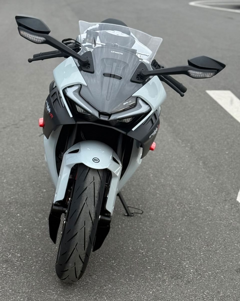 Die neue CFMOTO 675SR-R u?berzeugt mit kompromissloser Sportlichkeit. Ihr Dreizylinder-Reihenmotor liefert lineare Leistungsentfaltung und beeindruckende Beschleunigungswerte. Das kompakte Chassis bietet in Kombination mit hochwertigen Fahrwerkskomponenten ein spielerisch-agiles Handling. Und ihr Design ist bis ins Detail auf absolute Performance ausgelegt. Unter dem aggressiven Racing-Look steckt pure Technikbegeisterung: 674 cm Dreizylinder, 90 PS, 68 Nm Drehmoment. Das voll einstellbare KYB-Fahrwerk, radial montierte 300-mm-Doppelscheibenbremsen von J.JUAN, Quick-Shifter, TCS und ein leichter Aluminiumrahmen sorgen für exakte Kontrolle in jeder Kurve - für smarte Racer:innen mit Anspruch.