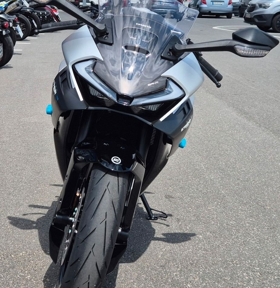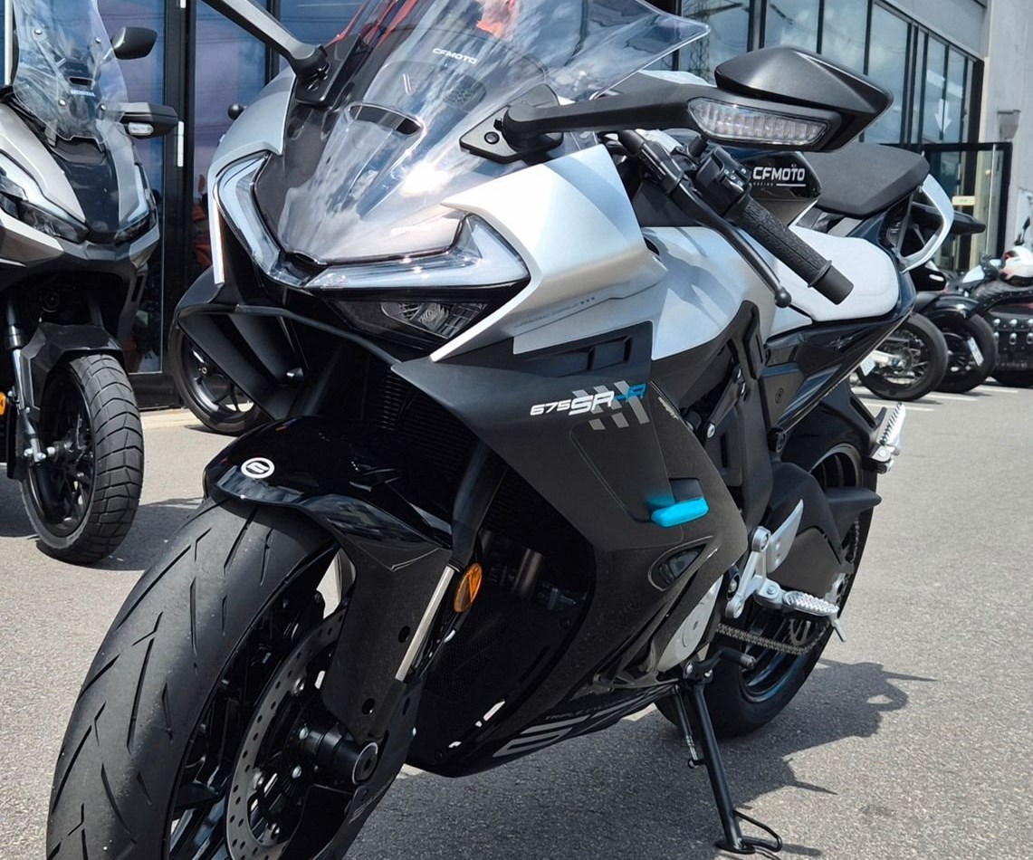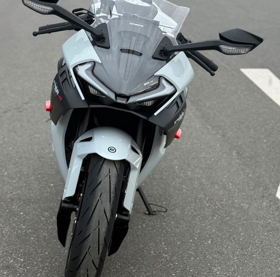 Die neue CFMOTO 675SR-R u?berzeugt mit kompromissloser Sportlichkeit. Ihr Dreizylinder-Reihenmotor liefert lineare Leistungsentfaltung und beeindruckende Beschleunigungswerte. Das kompakte Chassis bietet in Kombination mit hochwertigen Fahrwerkskomponenten ein spielerisch-agiles Handling. Und ihr Design ist bis ins Detail auf absolute Performance ausgelegt. Unter dem aggressiven Racing-Look steckt pure Technikbegeisterung: 674 cm Dreizylinder, 90 PS, 68 Nm Drehmoment. Das voll einstellbare KYB-Fahrwerk, radial montierte 300-mm-Doppelscheibenbremsen von J.JUAN, Quick-Shifter, TCS und ein leichter Aluminiumrahmen sorgen für exakte Kontrolle in jeder Kurve - für smarte Racer:innen mit Anspruch.