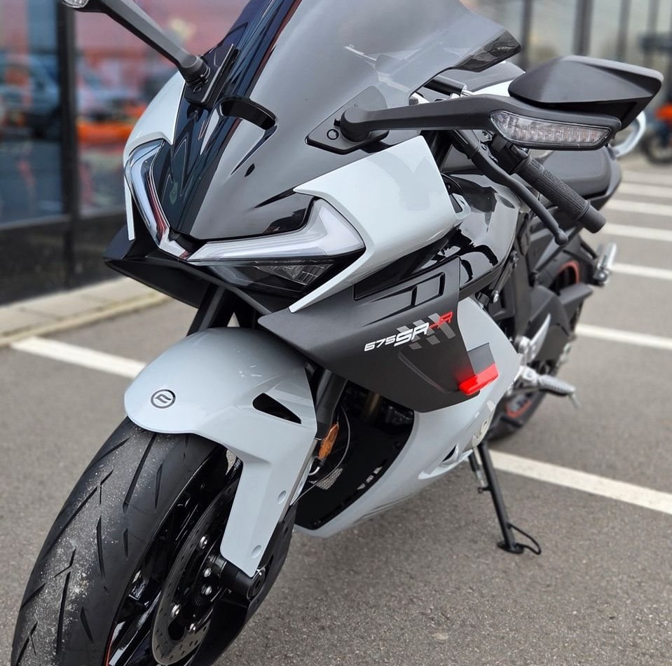 Die neue CFMOTO 675SR-R u?berzeugt mit kompromissloser Sportlichkeit. Ihr Dreizylinder-Reihenmotor liefert lineare Leistungsentfaltung und beeindruckende Beschleunigungswerte. Das kompakte Chassis bietet in Kombination mit hochwertigen Fahrwerkskomponenten ein spielerisch-agiles Handling. Und ihr Design ist bis ins Detail auf absolute Performance ausgelegt. Unter dem aggressiven Racing-Look steckt pure Technikbegeisterung: 674 cm Dreizylinder, 90 PS, 68 Nm Drehmoment. Das voll einstellbare KYB-Fahrwerk, radial montierte 300-mm-Doppelscheibenbremsen von J.JUAN, Quick-Shifter, TCS und ein leichter Aluminiumrahmen sorgen für exakte Kontrolle in jeder Kurve - für smarte Racer:innen mit Anspruch.