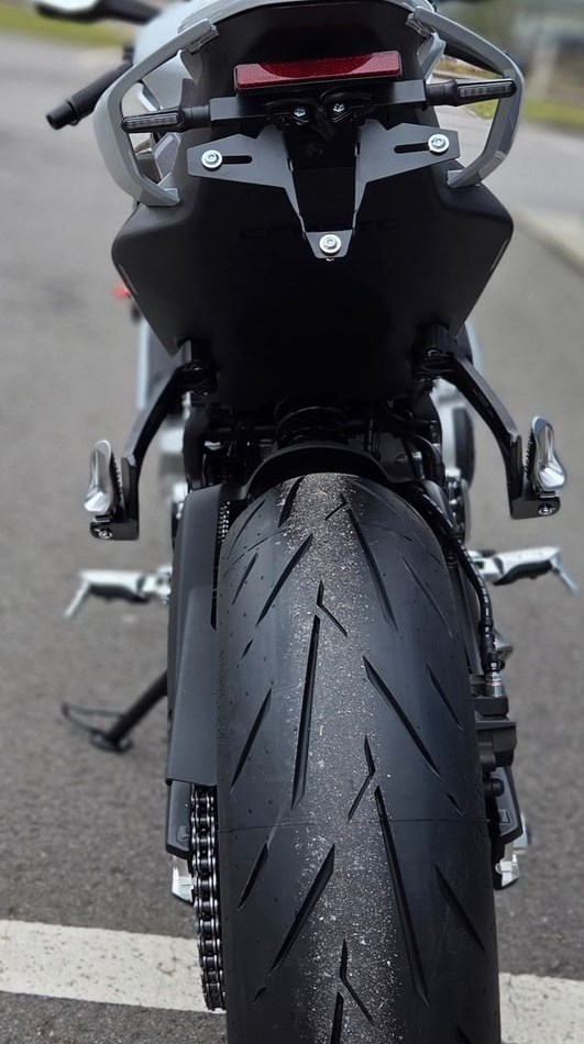Kurzer Kennzeichenhalter, Soziusabdeckung, schwarze Scheibe, Tankpad