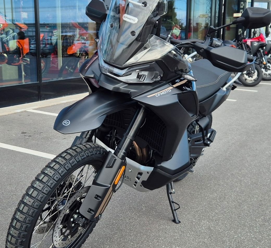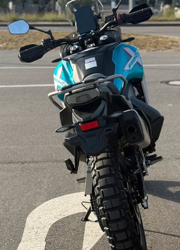 Ob auf kurvigem Asphalt oder im kernigen Gelände - die neue CFMOTO 800MT-X nimmt jede Herausforderung mit extremer Gelassenheit. Kompakt, leistungsstark und mit modernster Technik ausgestattet, bietet die 800MT-X herausragende Fahrleistungen auf ausgedehnten Reisen, beim nächsten Offroad-Abenteuer und dem täglichen Weg zur Arbeit.Im Kern arbeitet ein durchsetzungsstarker 799 cm Zweizylinder mit 91 PS und beeindruckenden 86 Nm Drehmoment. Drei Fahrmodi, Lenkungsdämpfer, ein voll einstellbares Fahrwerk und der riesige 22,5-Liter-Tank machen sie bereit für jede Etappe - von der Landstraße bis zur Bergpiste. 7"-TFT-Display, Quick-Shifter, Bosch-Kurven-ABS und Traktionskontrolle - für smarte Abenteuer ohne Limits. Abenteuer im Blick, Gelände im Griff: Die 800MT-X ist wie gemacht für alle, die nicht nach dem Weg fragen, sondern ihn selbst definieren. Ihr hochgezogenes Windschild, die schmale Silhouette und die massiven Speichenräder in 21/18 Zoll setzen ein klares Statement. In Nebula Black oder Zephyr Blue zeigt sie: Hier kommt ein echter Allrounder mit Offroad-Kompetenz und Touring-Komfort.