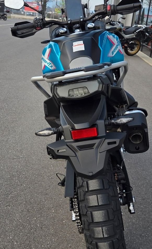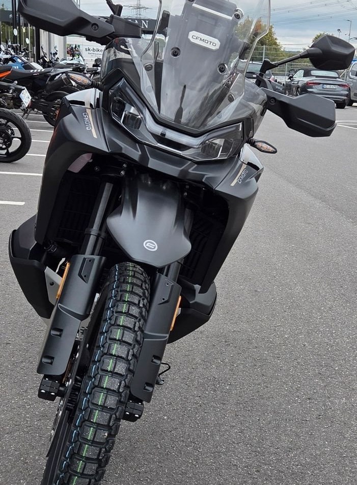 Ob auf kurvigem Asphalt oder im kernigen Gelände - die neue CFMOTO 800MT-X nimmt jede Herausforderung mit extremer Gelassenheit. Kompakt, leistungsstark und mit modernster Technik ausgestattet, bietet die 800MT-X herausragende Fahrleistungen auf ausgedehnten Reisen, beim nächsten Offroad-Abenteuer und dem täglichen Weg zur Arbeit.Im Kern arbeitet ein durchsetzungsstarker 799 cm Zweizylinder mit 91 PS und beeindruckenden 86 Nm Drehmoment. Drei Fahrmodi, Lenkungsdämpfer, ein voll einstellbares Fahrwerk und der riesige 22,5-Liter-Tank machen sie bereit für jede Etappe - von der Landstraße bis zur Bergpiste. 7"-TFT-Display, Quick-Shifter, Bosch-Kurven-ABS und Traktionskontrolle - für smarte Abenteuer ohne Limits. Abenteuer im Blick, Gelände im Griff: Die 800MT-X ist wie gemacht für alle, die nicht nach dem Weg fragen, sondern ihn selbst definieren. Ihr hochgezogenes Windschild, die schmale Silhouette und die massiven Speichenräder in 21/18 Zoll setzen ein klares Statement. In Nebula Black oder Zephyr Blue zeigt sie: Hier kommt ein echter Allrounder mit Offroad-Kompetenz und Touring-Komfort.