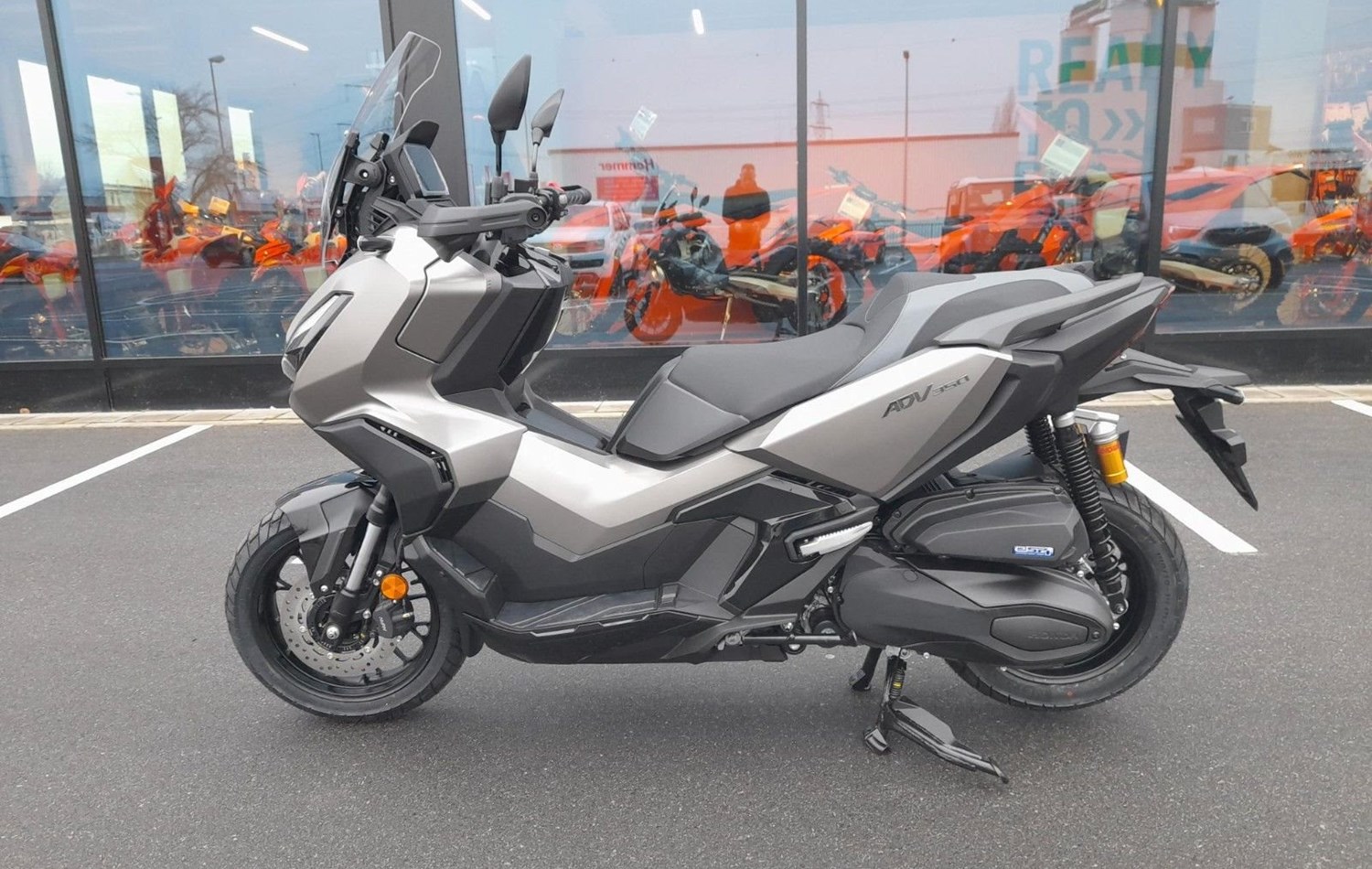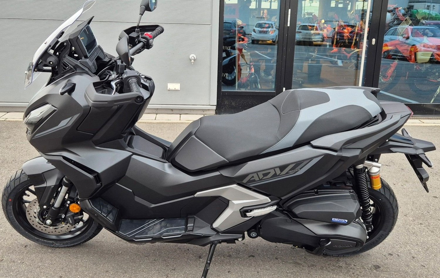 Zuversicht. Fühle es, wenn du den ADV350 Scooter fährst. Sportliche Motorleistung trifft auf ein robustes, leichtgängiges Fahrwerk und eine neue Hinterradaufhängung für mehr Komfort, um das Gelände mit Leichtigkeit zu bewältigen. Mit der automatischen Blinkerabschaltung ist der ADV350 nicht nur sicher, sondern auch funktional. Es geht aber nicht nur um Muskeln. Mit dem außerordentlich übersichtlichen 5-Zoll-TFT-Cockpit hast du während der Fahrt stets alles im Blick und dank Honda RoadSync-Integration jederzeit Zugriff auf Telefonanrufe, Musik und Navigation. Der ADV350. Auf diesen Roller kannst du dich verlassen.