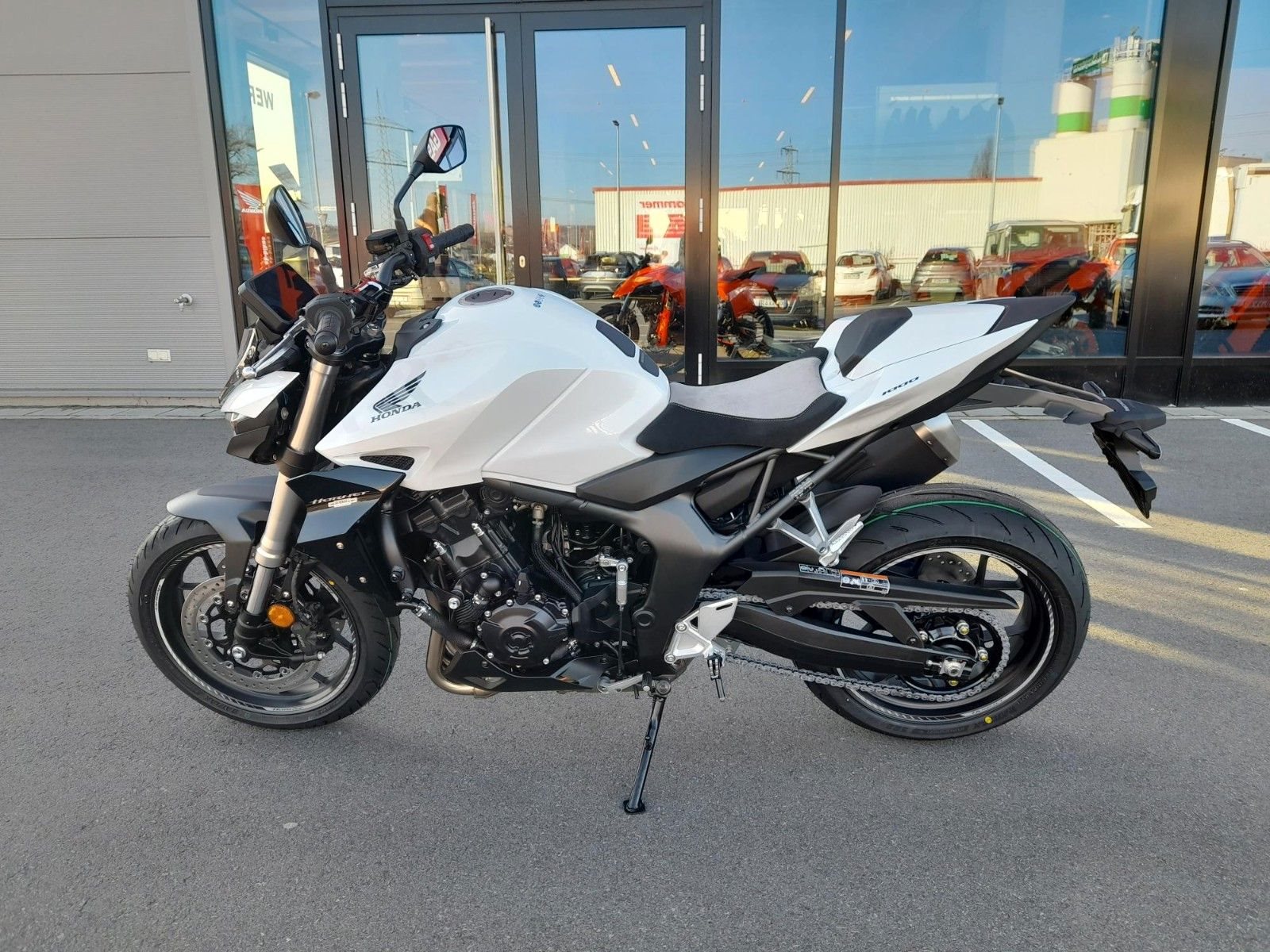 Die Hornet-Familie ist jetzt vollständig und unser Topmodell sticht heraus. Die neue CB1000 Hornet mit ihrem Vierzylindermotor ist ein erstklassiges Naked Bike, das den Asphalt zum Glühen bringt. Throttle By Wire sorgt für präzise Kontrolle, während das Fahrwerk mit der einstellbaren SHOWA 41mm SFF-BP Upside-Down-Gabel und dem Pro-Link-Federbein ausgestattet ist. Die unverfälschte, aggressive Streetfighter-Attitüde wird durch einen markanten LED-Doppelscheinwerfer unterstrichen. Das 5-Zoll TFT-Farbdisplay und die Honda RoadSync-Konnektivität sorgen für die nötigen Informationen. Kann es losgehen?