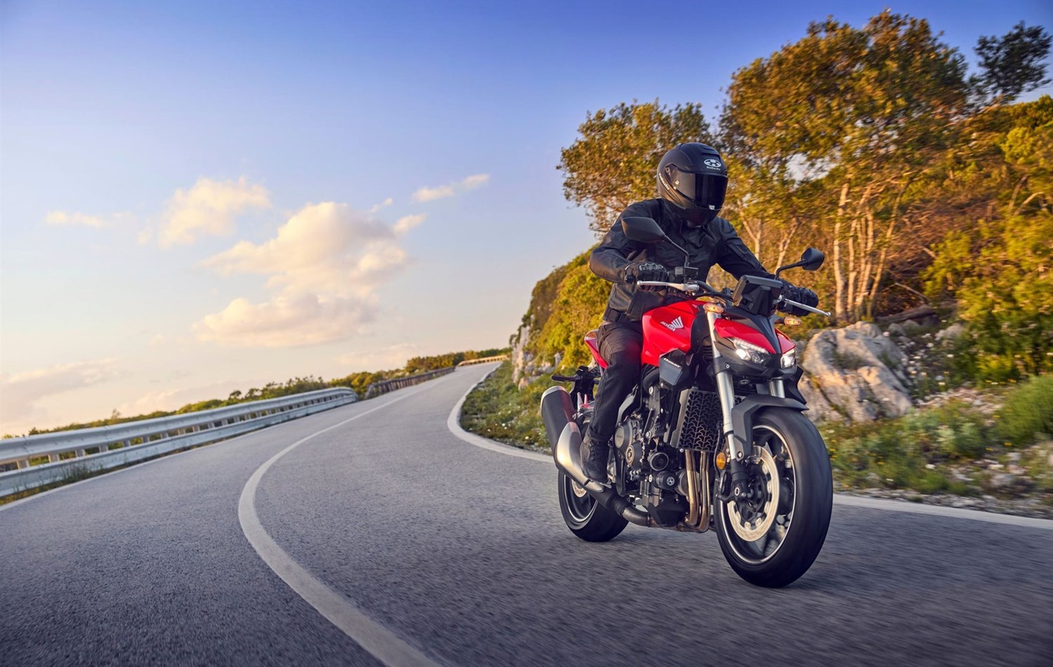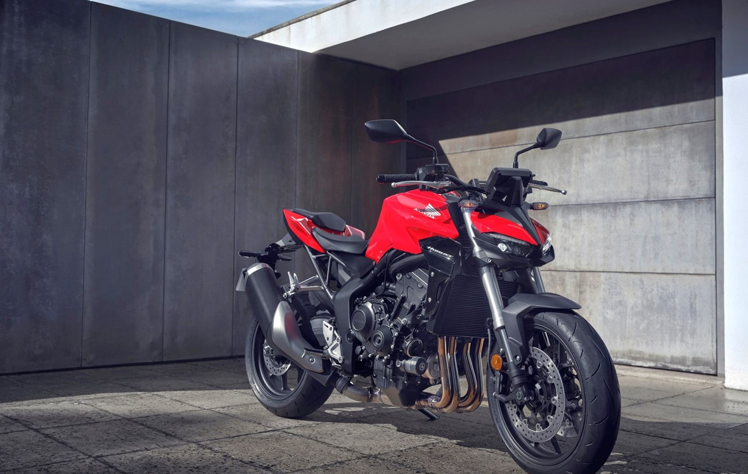 Die Hornet-Familie ist jetzt vollständig und unser Topmodell sticht heraus. Die neue CB1000 Hornet mit ihrem Vierzylindermotor ist ein erstklassiges Naked Bike, das den Asphalt zum Glühen bringt. Throttle By Wire sorgt für präzise Kontrolle, während das Fahrwerk mit der einstellbaren SHOWA 41mm SFF-BP Upside-Down-Gabel und dem Pro-Link-Federbein ausgestattet ist. Die unverfälschte, aggressive Streetfighter-Attitüde wird durch einen markanten LED-Doppelscheinwerfer unterstrichen. Das 5-Zoll TFT-Farbdisplay und die Honda RoadSync-Konnektivität sorgen für die nötigen Informationen. Kann es losgehen?