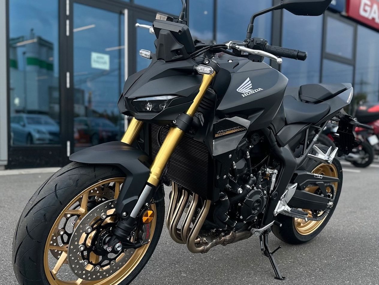 Die Hornet-Familie ist jetzt vollständig und unser Topmodell sticht heraus. Die neue CB1000 Hornet mit ihrem Vierzylindermotor ist ein erstklassiges Naked Bike, das den Asphalt zum Glühen bringt. Throttle By Wire sorgt für präzise Kontrolle, während das Fahrwerk mit der einstellbaren SHOWA 41mm SFF-BP Upside-Down-Gabel und dem Pro-Link-Federbein ausgestattet ist. Die unverfälschte, aggressive Streetfighter-Attitüde wird durch einen markanten LED-Doppelscheinwerfer unterstrichen. Das 5-Zoll TFT-Farbdisplay und die Honda RoadSync-Konnektivität sorgen für die nötigen Informationen. Kann es losgehen?