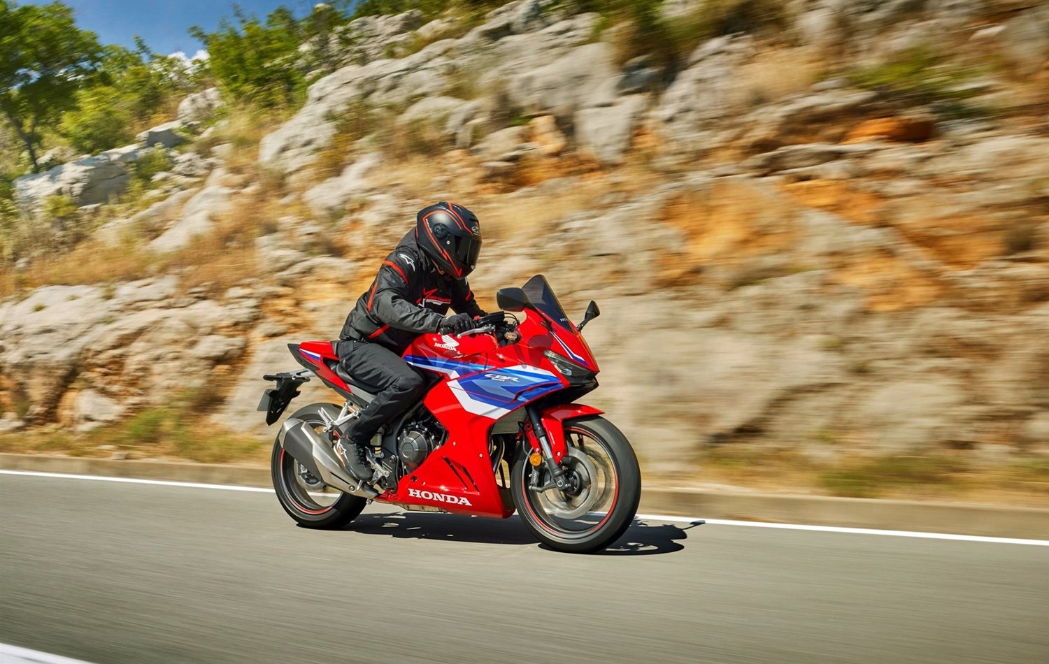 Was HRC an der Spitze erfährt, fließt direkt zurück. Und mit der CBR500R geht es los Fireblade-Stil, aerodynamische Winglets und ein starker Zweizylindermotor mit einer auf Beschleunigung getrimmten ECU. Die E-Clutch sorgt für sanftes, kupplungsfreies Schalten und mehr Leistung. Zum Chassis gehören eine Showa Upside-Down-Gabel und zwei radial montierte Bremssättel. Ein TFT-Display mit voller Konnektivität und HSTC-Griffsteuerung bringt Technik ins Spiel. Ob in der Stadt, auf der kleinen Landstraße oder auf der Rennstrecke dieses Motorrad macht einfach Spaß.
