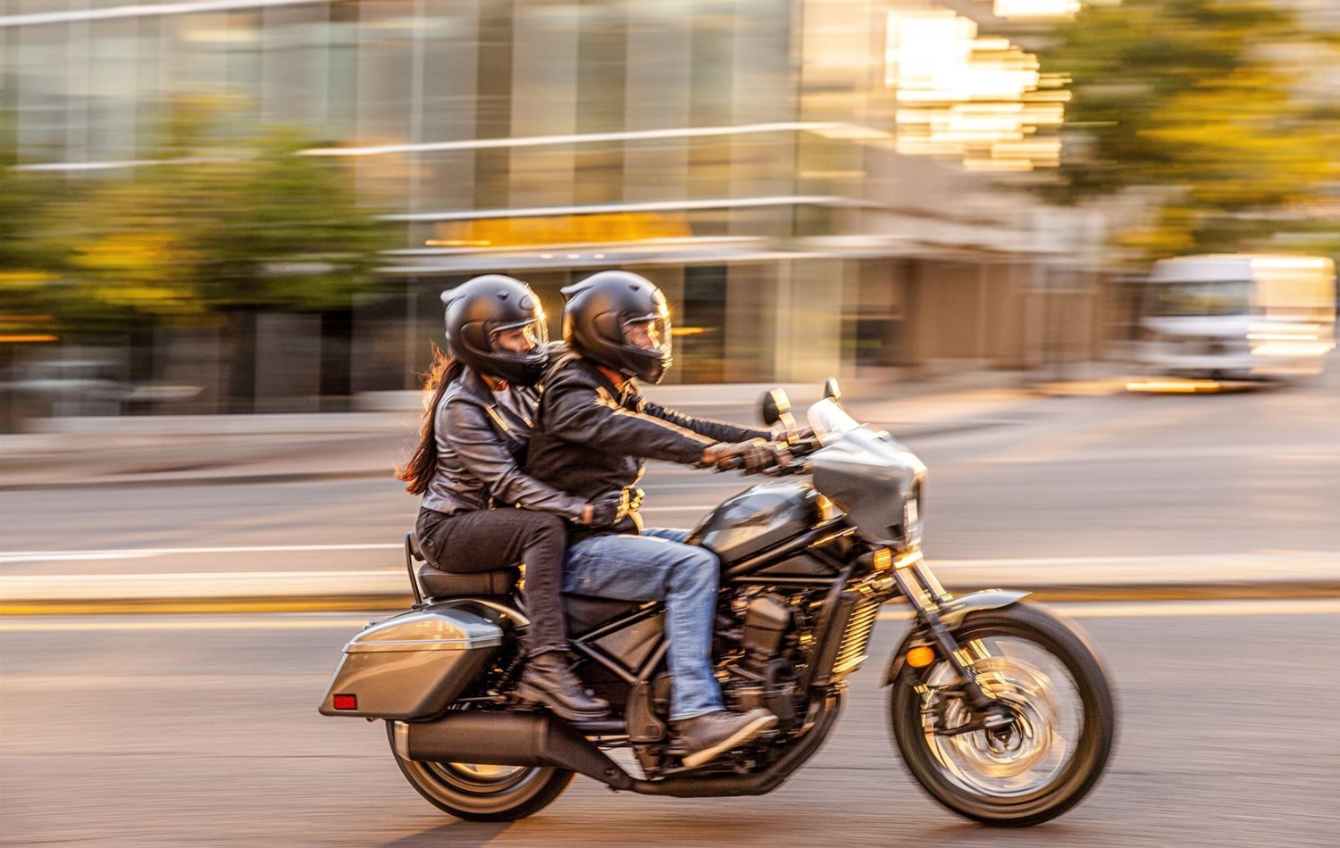 Es geht nicht nur darum, wo du gewesen bist. Es geht darum, wohin du fährst. Die neue CMX1100 Rebel bringt dich in unnachahmlichem Street-Cruising-Stil ans Ziel. Mit dem zusätzlichen Wumms des kernigen Zweizylindermotors schiebt sie von unten heraus über den gesamten mittleren Drehzahlbereich kraftvoll an. Der höher angesetzte, zum Fahrer hin gezogene Lenker,nach vorne gesetzte Fußrasten und 10 mm mehr Sitzhöhe sorgen für eine komfortablere und festere Fahrposition. Während du fährst, hält dich ein gestochen scharfes neues TFT-Display (5 Zoll) mit Smartphone-fähigem Honda RoadSync auf dem Laufenden.