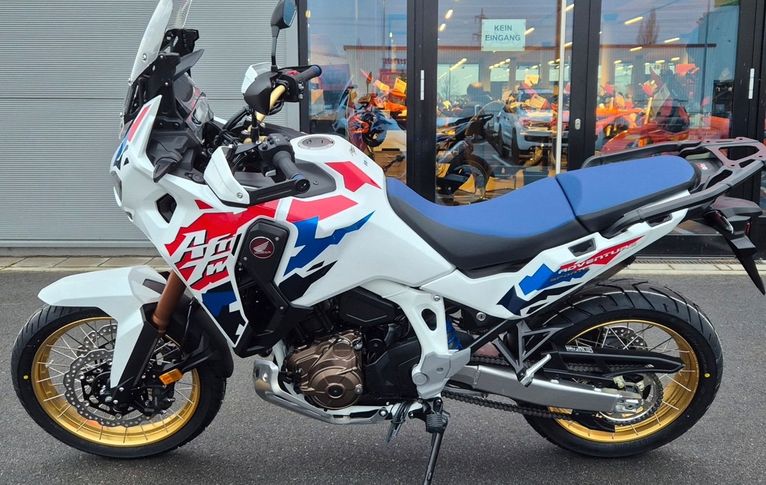 Die neue Africa Twin Adventure Sports ES ist eine ganz besondere Maschine. Sie zeichnet sich durch ein höheres Drehmoment im mittleren Drehzahlbereich für eine starke Beschleunigung bei Überholvorgängen aus. Das 19-Zoll-Vorderrad mit einem 110/80-19-Reifen, die niedrigere Sitzhöhe und die elektrisch einstellbare Showa-EERAT-Aufhängung sorgen für optimales Handling auf der Straße. Die neue Verkleidung und eine neues Windschild bieten jederzeit perfekten Windschutz, sodass du bei langen Touren den 24,8 Liter fassenden Tank voll auskosten kannst. Genau dafür haben wir dieses Motorrad gebaut.