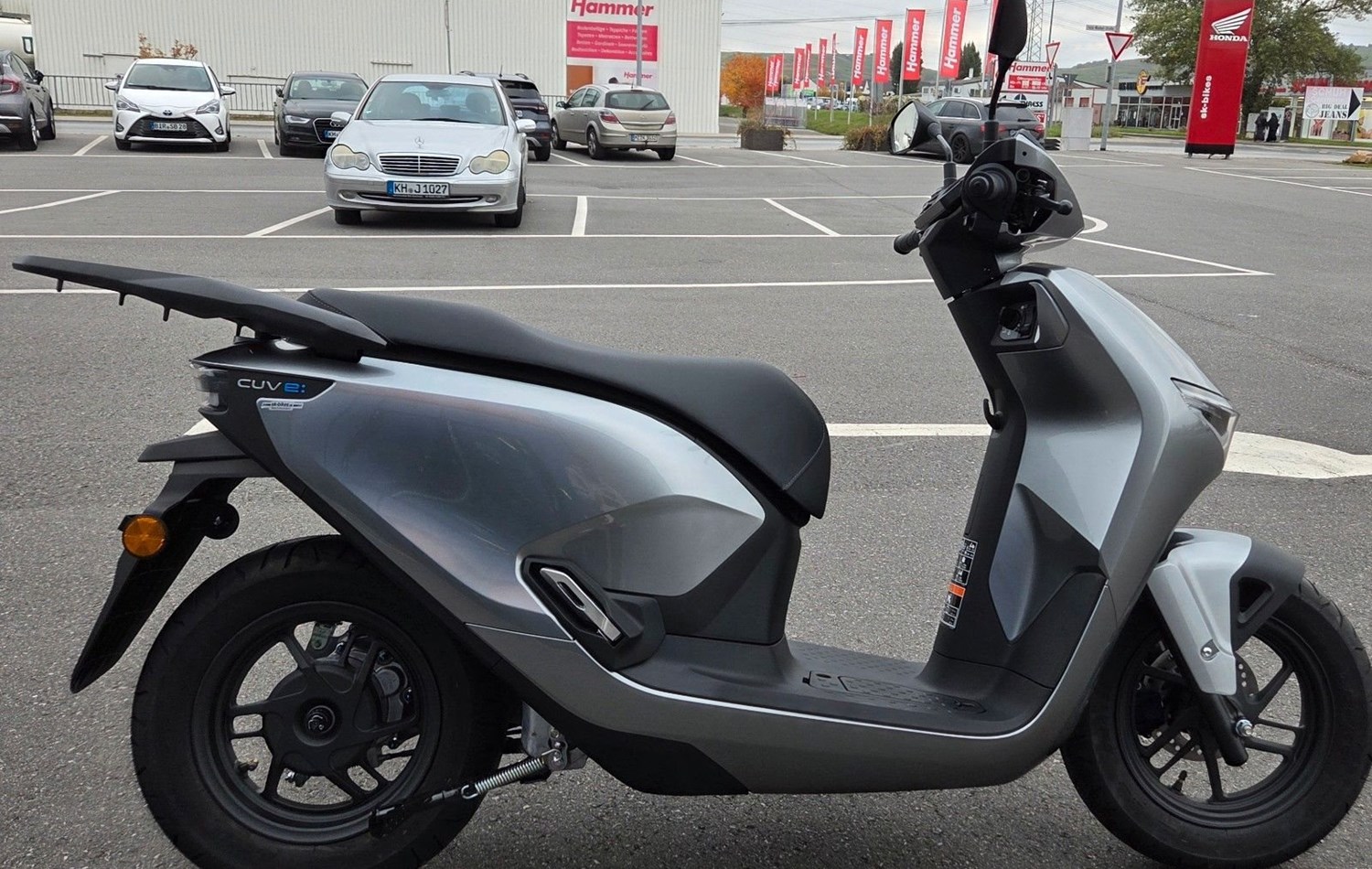 Reichweite: Ganze 72 km - perfekt zum Cruisen in der Stadt. Höchstgeschwindigkeit: 83 km/h sind mehr als genug, um im Verkehr Schritt zu halten. Ladezeit: Die Batterien lassen sich in jeweils weniger als 3 Stunden von 0 auf 75 % aufladen.Batterietyp: Die Ausstattung umfasst zwei Lithium-Ionen-Batterien, sogenannte Mobile Power Packs (MPP) mit 48 Volt/1,3 kWh. Spitzenleistung: Satte 6 kW (je nach Batteriestand) - das entspricht einem Verbrenner mit 110 cm. Leicht: Mit nur 120 kg lässt sich der CUV e unbeschwert durch den Stadtverkehr manövrieren.