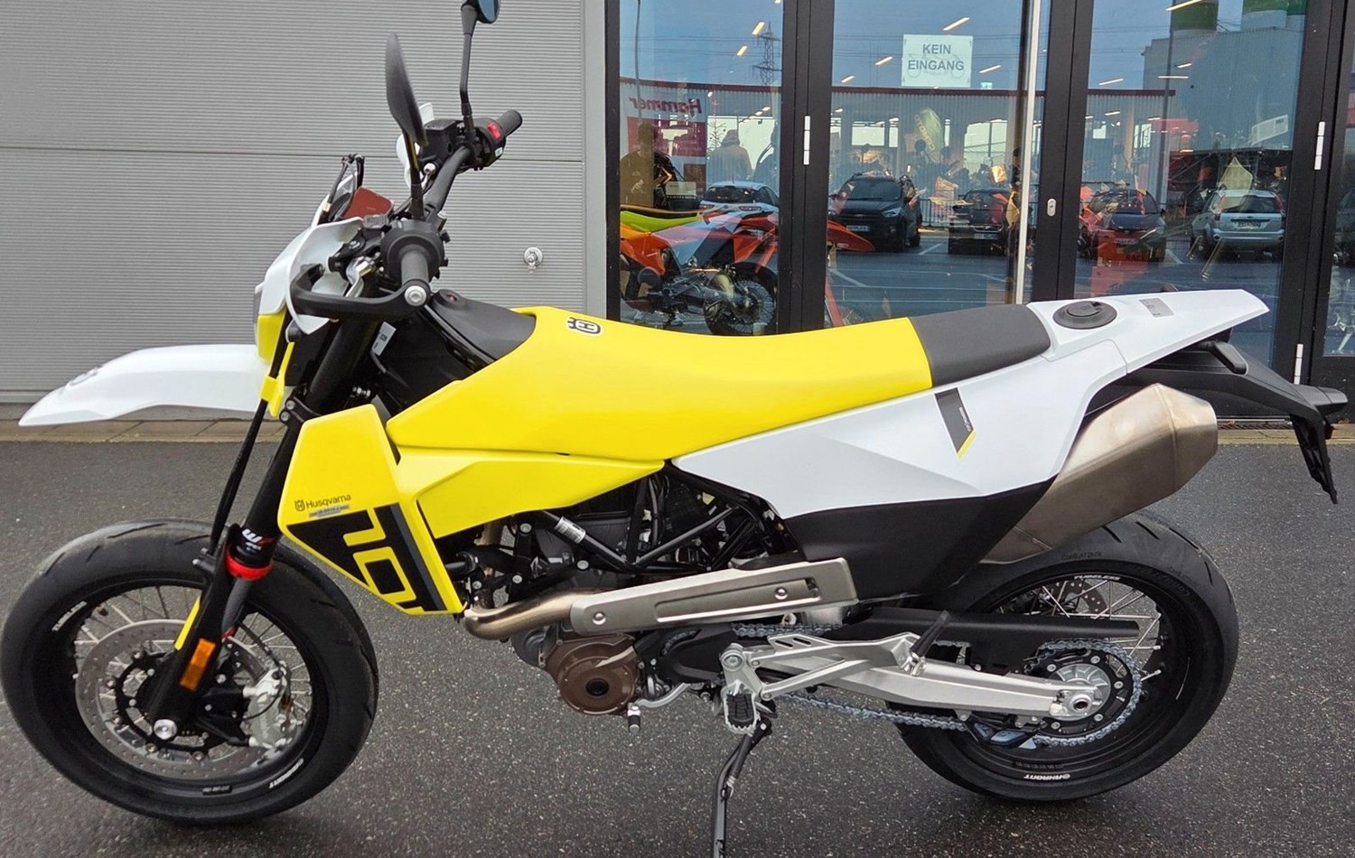 Modernes Design, hochwertige Komponenten und neueste Technologie machen die 701 Supermoto zu einer Maschine wie keine andere. Entwickelt, um den puren Supermoto-Geist auf die Straße zu bringen, lässt sich die Leistung des leistungsstärksten Einzylinder-Modells mit zahlreichen elektronischen Fahrassistenzsystemen optimieren. Dank des perfekt ausbalancierten Fahrwerks gleitet der Fahrer mühelos von Kurve zu Kurve und beherrscht die Straße.