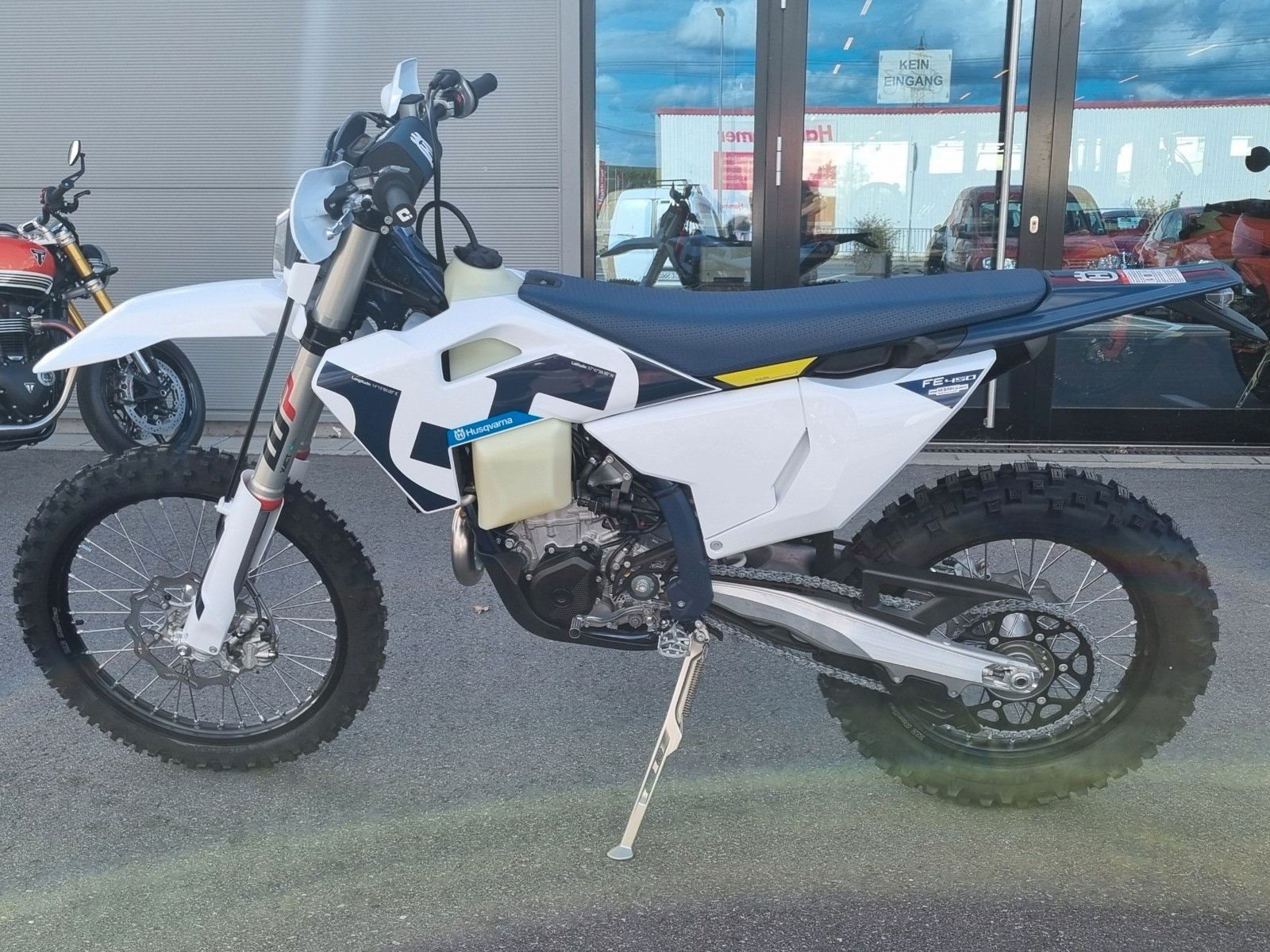 Mit ihrem modernen Fahrwerk, der fortschrittlichen Technologie und den besten Bauteilen ist die FE 450 eine leistungsstarke Enduro-Maschine. Das Layout des Motors positioniert alle Wellenanordnungen nahe am Schwerpunkt, um die Agilität zu verbessern, während die breite Leistungsentfaltung mit Hilfe einer Reihe elektronischer Einsatzzwecke für den Fahrer leicht angepasst werden kann. In unwegsamem Gelände sorgen die WP Suspension und der perfekt ausbalancierte Rahmen für ein ermüdungsfreies Fahren. Komplettiert wird die FE 450 durch eine Grafik, die vom schwedischen Erbe der Marke inspiriert ist und für einen unverwechselbaren Look sorgt.