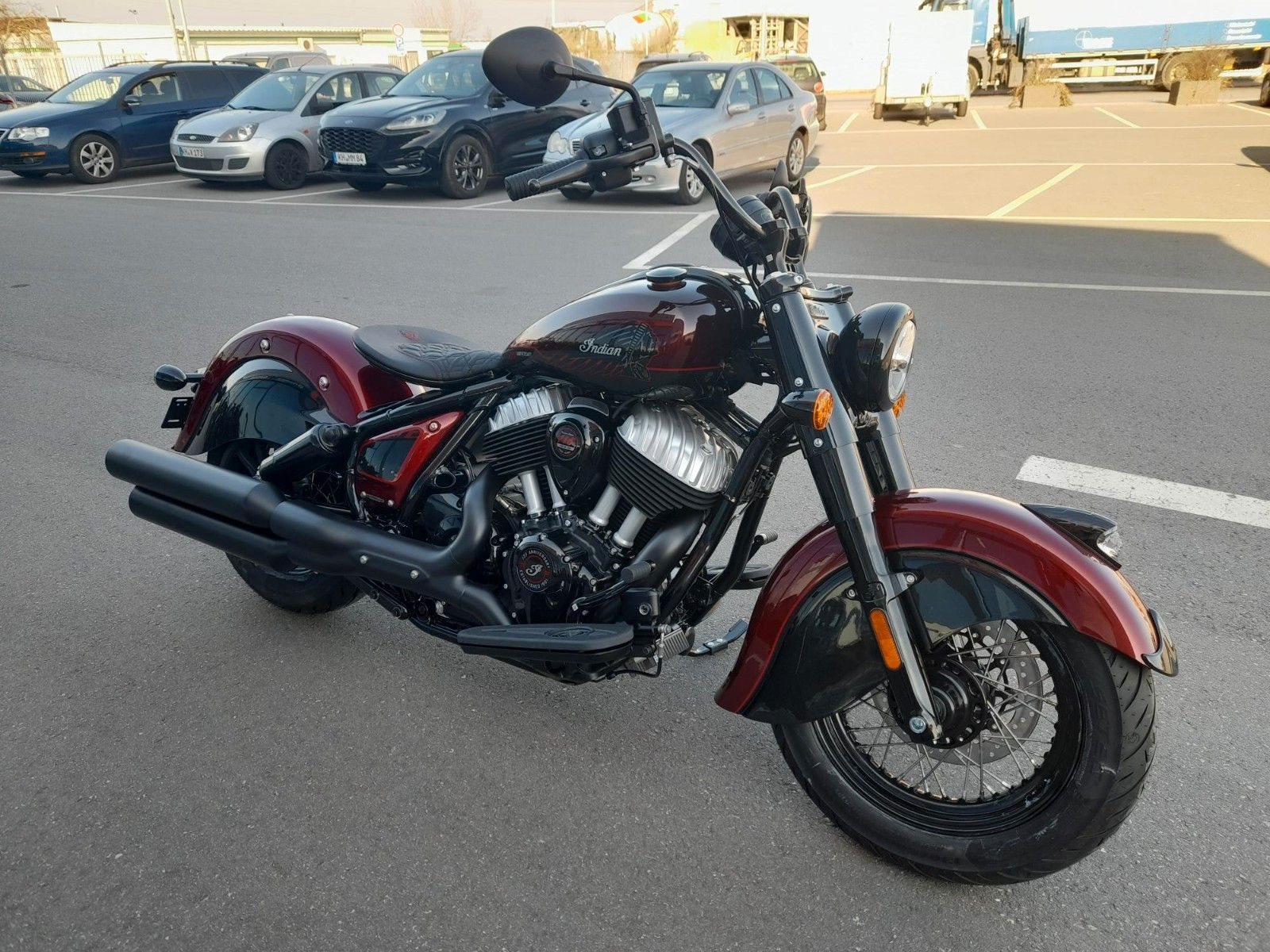 Indian Chief Vintage neu für 2026Im markentypischen Dunkelrot und mit großzügig geschwungenen Schutzblechen erinnert die neue Indian Chief Vintage stilsicher an die ikonische Indian Chief aus den 1940er-Jahren. Also ist auch diese Indian Chief eine im klassischen Sinne schwere Maschine. Low-Rider-Sitzhöhe: unter 70 Zentimeter (686 mm).Luftgekühlter V2-MotorNach wie vor luftgekühlt ist der große V2-Motor der neuen Indian Chief Vintage. Prinzipiell ist das also ein standesgemäßer Antrieb wie seit vielen Jahrzehnten, Kühlrippen und Stoßstangen-Ventiltrieb sind prächtig inszeniert. Stolze 1.890 Kubik Hubraum hat der markante Big Twin namens Thunderstroke 116.