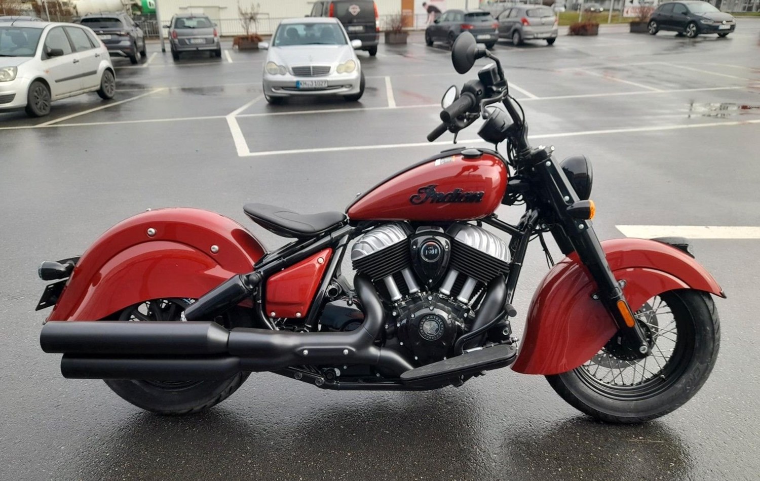 Indian Chief Vintage neu für 2026Im markentypischen Dunkelrot und mit großzügig geschwungenen Schutzblechen erinnert die neue Indian Chief Vintage stilsicher an die ikonische Indian Chief aus den 1940er-Jahren. Also ist auch diese Indian Chief eine im klassischen Sinne schwere Maschine. Low-Rider-Sitzhöhe: unter 70 Zentimeter (686 mm).Luftgekühlter V2-MotorNach wie vor luftgekühlt ist der große V2-Motor der neuen Indian Chief Vintage. Prinzipiell ist das also ein standesgemäßer Antrieb wie seit vielen Jahrzehnten, Kühlrippen und Stoßstangen-Ventiltrieb sind prächtig inszeniert. Stolze 1.890 Kubik Hubraum hat der markante Big Twin namens Thunderstroke 116.