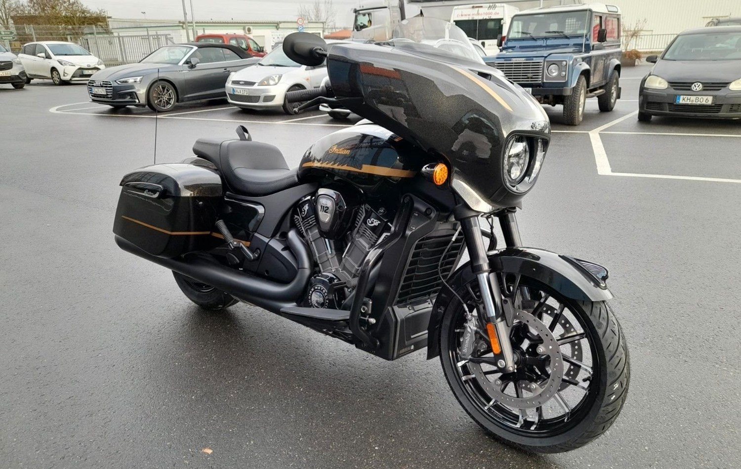 STYLE MIT CHARAKTER Offensives Blacked-out-Finish, edle Verkleidung, Satteltaschen und Sitz im Gunfighter-Style - das ist souveräne Präsenz.BESTER SOUND FÜR DIE STRASSE Mit den verkleideten Hochleistungslautsprechern, die mit 100 Watt einen kristallklaren Klang liefern, verpasst du keinen Ton. Und der dynamische Equalizer passt sich automatisch den Straßen-, Wind- und Motorgeräuschen an.AGILES HANDLING UND KONTROLLE Die niedrige Sitzhöhe, die ergonomisch gestalteten Bedienelemente und der leichte Aluminiumgussrahmen sorgen für ein reaktionsschnelles Handling und agile Kurvenfahrten - ein vertrauenserweckendes Fahrgefühl bei jeder Fahrt.ERSTKLASSIGE AUSSTATTUNG Die Chieftain ist serienmäßig mit LED-Beleuchtung, schlüsselloser Zündung, Tempomat, elektrisch verschließbaren Seitenkoffern, ABS und Reifendruckkontrolle ausgestattet. 7-Zoll-Touchscreen mit RIDE COMMAND inkl. Apple CarPlay-Integration; elektrische Windschutzscheibe; Highway Bars; Vinyl-Rogue-Sitz; Reifendrucküberwachung; fernbedienbare Hard Saddlebags; wählbare Fahrmodi; Deaktivierung des hinteren Zylinders; ABS; Tempomat; schlüssellose Zündung; 100-Watt-Audiosystem mit AM/FM, Bluetooth, USB, Smartphone-kompatiblem Eingang; 12-V-LadeanschlussFür eine Besichtigung oder Probefahrt kontaktieren Sie uns gerne.