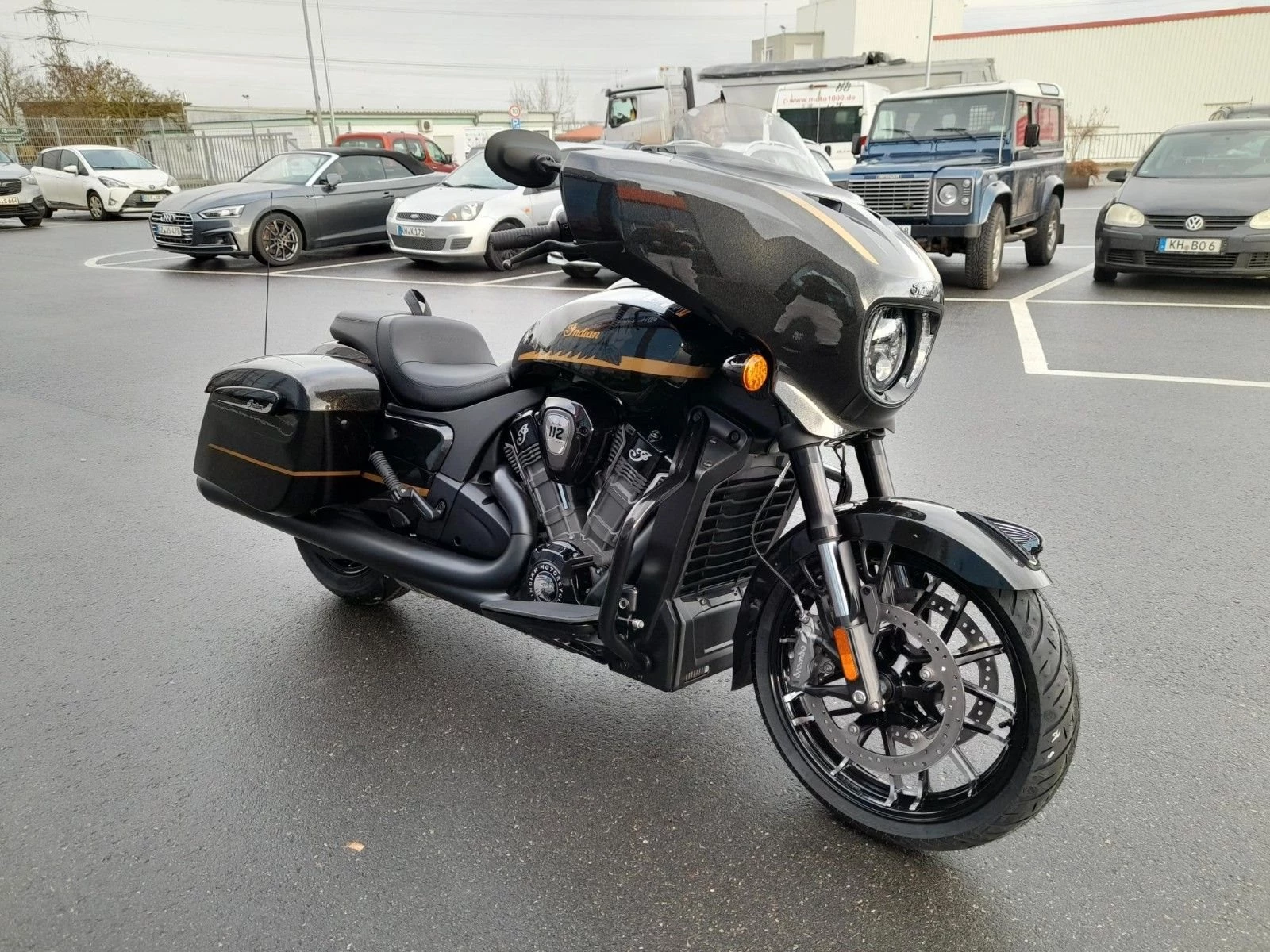 STYLE MIT CHARAKTER Offensives Blacked-out-Finish, edle Verkleidung, Satteltaschen und Sitz im Gunfighter-Style - das ist souveräne Präsenz.BESTER SOUND FÜR DIE STRASSE Mit den verkleideten Hochleistungslautsprechern, die mit 100 Watt einen kristallklaren Klang liefern, verpasst du keinen Ton. Und der dynamische Equalizer passt sich automatisch den Straßen-, Wind- und Motorgeräuschen an.AGILES HANDLING UND KONTROLLE Die niedrige Sitzhöhe, die ergonomisch gestalteten Bedienelemente und der leichte Aluminiumgussrahmen sorgen für ein reaktionsschnelles Handling und agile Kurvenfahrten - ein vertrauenserweckendes Fahrgefühl bei jeder Fahrt.ERSTKLASSIGE AUSSTATTUNG Die Chieftain ist serienmäßig mit LED-Beleuchtung, schlüsselloser Zündung, Tempomat, elektrisch verschließbaren Seitenkoffern, ABS und Reifendruckkontrolle ausgestattet. 7-Zoll-Touchscreen mit RIDE COMMAND inkl. Apple CarPlay-Integration; elektrische Windschutzscheibe; Highway Bars; Vinyl-Rogue-Sitz; Reifendrucküberwachung; fernbedienbare Hard Saddlebags; wählbare Fahrmodi; Deaktivierung des hinteren Zylinders; ABS; Tempomat; schlüssellose Zündung; 100-Watt-Audiosystem mit AM/FM, Bluetooth, USB, Smartphone-kompatiblem Eingang; 12-V-LadeanschlussFür eine Besichtigung oder Probefahrt kontaktieren Sie uns gerne.