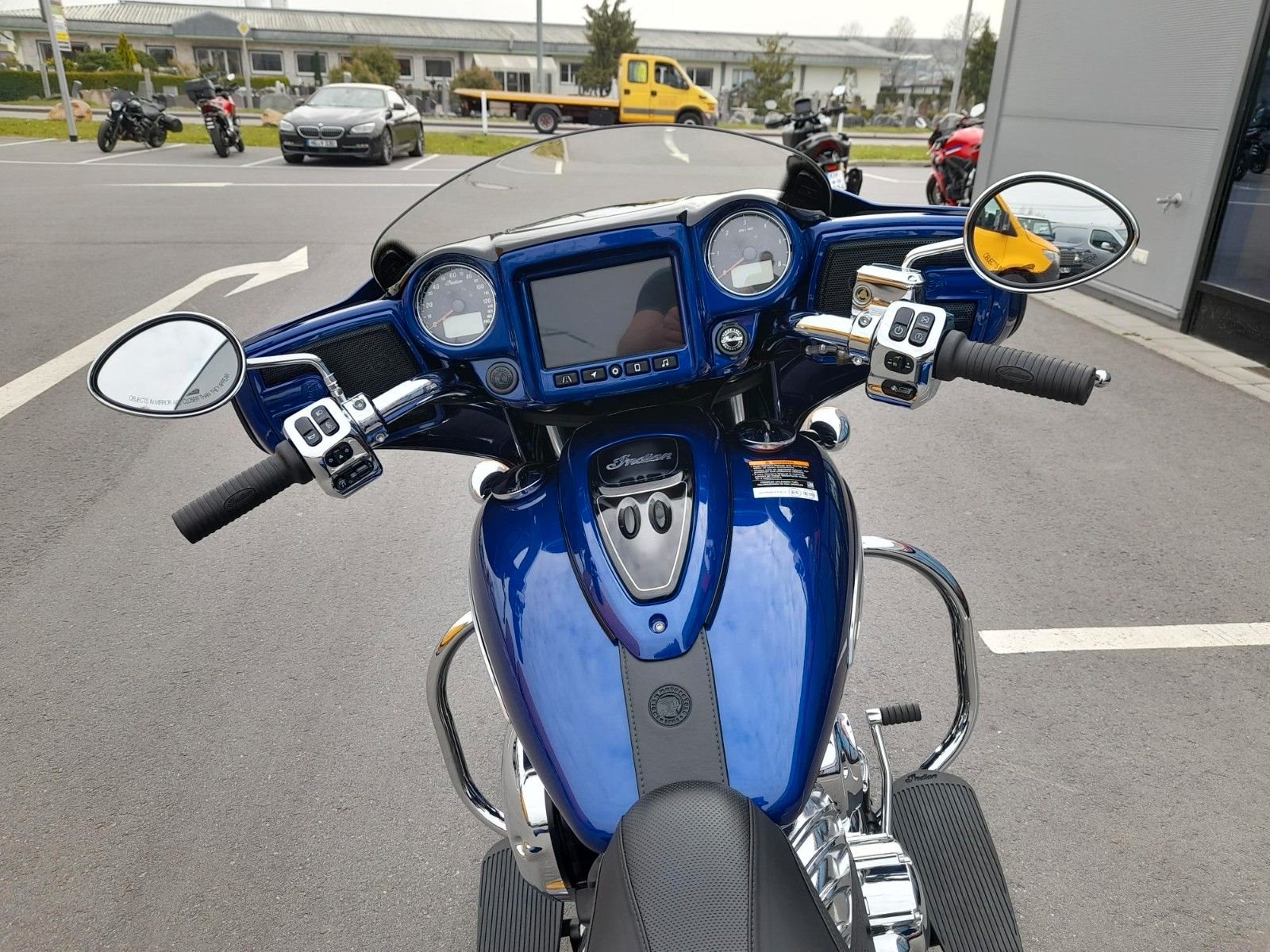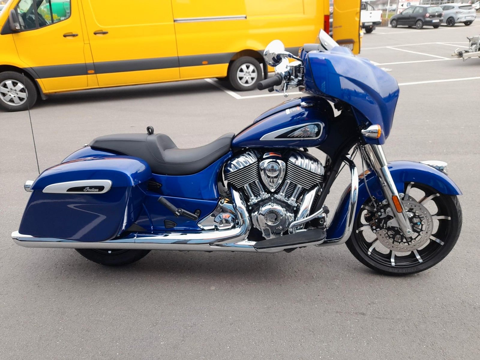 THUNDERSTROKE 116 V-TWIN-MOTOR Der luftgekühlte Thunderstroke 116-Motor bietet mit einem Drehmoment von 171 Nm unvergleichliche Kraft bei niedrigen Drehzahlen und maximale Souveränität bei jeder Geschwindigkeit.STYLE MIT CHARAKTER Offensives Blacked-out-Finish, edle Verkleidung, Satteltaschen und Sitz im Gunfighter-Style - das ist souveräne Präsenz.BESTER SOUND FÜR DIE STRASSE Mit den verkleideten Hochleistungslautsprechern, die mit 100 Watt einen kristallklaren Klang liefern, verpasst du keinen Ton. Und der dynamische Equalizer passt sich automatisch den Straßen-, Wind- und Motorgeräuschen an.AGILES HANDLING UND KONTROLLE Die niedrige Sitzhöhe, die ergonomisch gestalteten Bedienelemente und der leichte Aluminiumgussrahmen sorgen für ein reaktionsschnelles Handling und agile Kurvenfahrten - ein vertrauenserweckendes Fahrgefühl bei jeder Fahrt.ERSTKLASSIGE AUSSTATTUNG Die Chieftain Limited ist serienmäßig mit LED-Beleuchtung, schlüsselloser Zündung, Tempomat, elektrisch verschließbaren Seitenkoffern, ABS und Reifendruckkontrolle ausgestattet. 7-Zoll-Touchscreen mit RIDE COMMAND inkl. Apple CarPlay-Integration; elektrische Windschutzscheibe; Highway Bars; Vinyl-Rogue-Sitz; Reifendrucküberwachung; fernbedienbare Hard Saddlebags; wählbare Fahrmodi; Deaktivierung des hinteren Zylinders; ABS; Tempomat; schlüssellose Zündung; 100-Watt-Audiosystem mit AM/FM, Bluetooth, USB, Smartphone-kompatiblem Eingang; 12-V-Ladeanschluss* Für eine Besichtigung oder Probefahrt kontaktieren Sie uns gerne.
