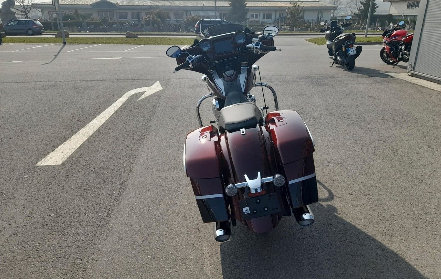 THUNDERSTROKE 116 V-TWIN-MOTOR Der luftgekühlte Thunderstroke 116-Motor bietet mit einem Drehmoment von 171 Nm unvergleichliche Kraft bei niedrigen Drehzahlen und maximale Souveränität bei jeder Geschwindigkeit.STYLE MIT CHARAKTER Offensives Blacked-out-Finish, edle Verkleidung, Satteltaschen und Sitz im Gunfighter-Style - das ist souveräne Präsenz.BESTER SOUND FÜR DIE STRASSE Mit den verkleideten Hochleistungslautsprechern, die mit 100 Watt einen kristallklaren Klang liefern, verpasst du keinen Ton. Und der dynamische Equalizer passt sich automatisch den Straßen-, Wind- und Motorgeräuschen an.AGILES HANDLING UND KONTROLLE Die niedrige Sitzhöhe, die ergonomisch gestalteten Bedienelemente und der leichte Aluminiumgussrahmen sorgen für ein reaktionsschnelles Handling und agile Kurvenfahrten - ein vertrauenserweckendes Fahrgefühl bei jeder Fahrt.ERSTKLASSIGE AUSSTATTUNG Die Chieftain Limited ist serienmäßig mit LED-Beleuchtung, schlüsselloser Zündung, Tempomat, elektrisch verschließbaren Seitenkoffern, ABS und Reifendruckkontrolle ausgestattet. 7-Zoll-Touchscreen mit RIDE COMMAND inkl. Apple CarPlay-Integration; elektrische Windschutzscheibe; Highway Bars; Vinyl-Rogue-Sitz; Reifendrucküberwachung; fernbedienbare Hard Saddlebags; wählbare Fahrmodi; Deaktivierung des hinteren Zylinders; ABS; Tempomat; schlüssellose Zündung; 100-Watt-Audiosystem mit AM/FM, Bluetooth, USB, Smartphone-kompatiblem Eingang; 12-V-LadeanschlussFür eine Besichtigung oder Probefahrt kontaktieren Sie uns gerne.