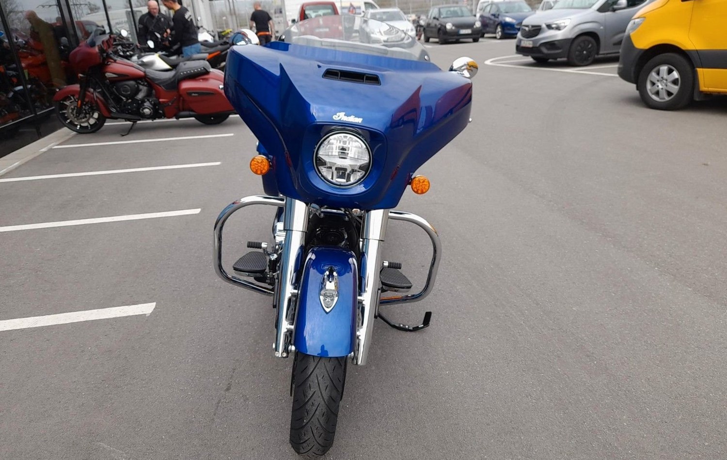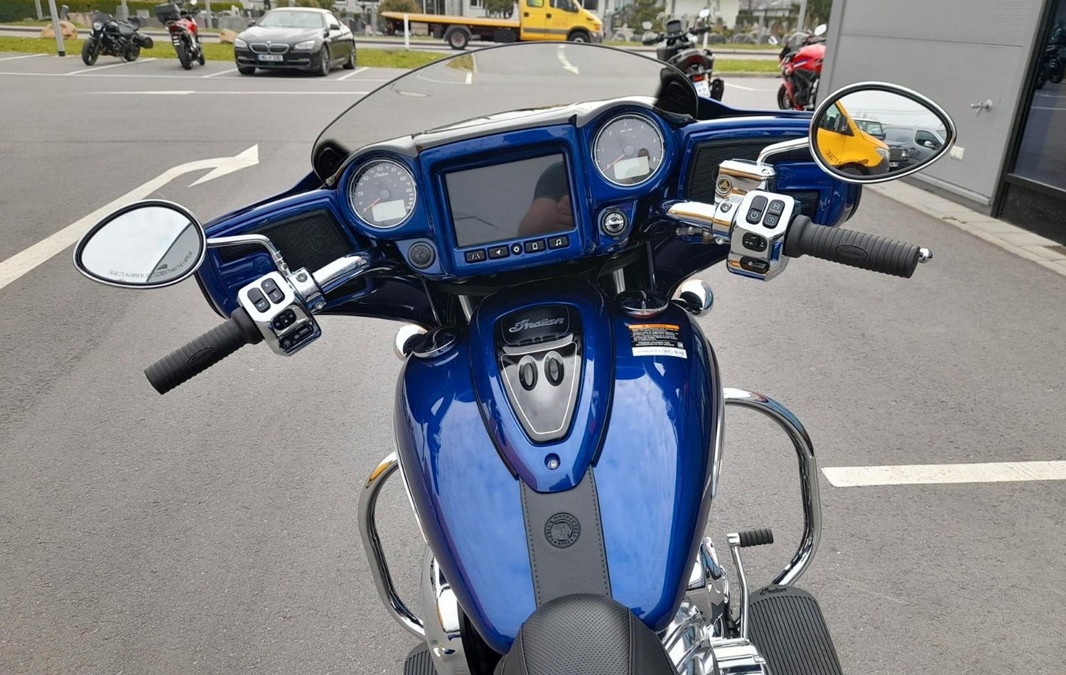THUNDERSTROKE 116 V-TWIN-MOTOR Der luftgekühlte Thunderstroke 116-Motor bietet mit einem Drehmoment von 171 Nm unvergleichliche Kraft bei niedrigen Drehzahlen und maximale Souveränität bei jeder Geschwindigkeit.STYLE MIT CHARAKTER Offensives Blacked-out-Finish, edle Verkleidung, Satteltaschen und Sitz im Gunfighter-Style - das ist souveräne Präsenz.BESTER SOUND FÜR DIE STRASSE Mit den verkleideten Hochleistungslautsprechern, die mit 100 Watt einen kristallklaren Klang liefern, verpasst du keinen Ton. Und der dynamische Equalizer passt sich automatisch den Straßen-, Wind- und Motorgeräuschen an.AGILES HANDLING UND KONTROLLE Die niedrige Sitzhöhe, die ergonomisch gestalteten Bedienelemente und der leichte Aluminiumgussrahmen sorgen für ein reaktionsschnelles Handling und agile Kurvenfahrten - ein vertrauenserweckendes Fahrgefühl bei jeder Fahrt.ERSTKLASSIGE AUSSTATTUNG Die Chieftain Limited ist serienmäßig mit LED-Beleuchtung, schlüsselloser Zündung, Tempomat, elektrisch verschließbaren Seitenkoffern, ABS und Reifendruckkontrolle ausgestattet. 7-Zoll-Touchscreen mit RIDE COMMAND inkl. Apple CarPlay-Integration; elektrische Windschutzscheibe; Highway Bars; Vinyl-Rogue-Sitz; Reifendrucküberwachung; fernbedienbare Hard Saddlebags; wählbare Fahrmodi; Deaktivierung des hinteren Zylinders; ABS; Tempomat; schlüssellose Zündung; 100-Watt-Audiosystem mit AM/FM, Bluetooth, USB, Smartphone-kompatiblem Eingang; 12-V-Ladeanschluss* Für eine Besichtigung oder Probefahrt kontaktieren Sie uns gerne.
