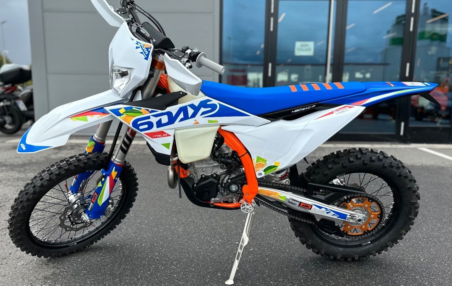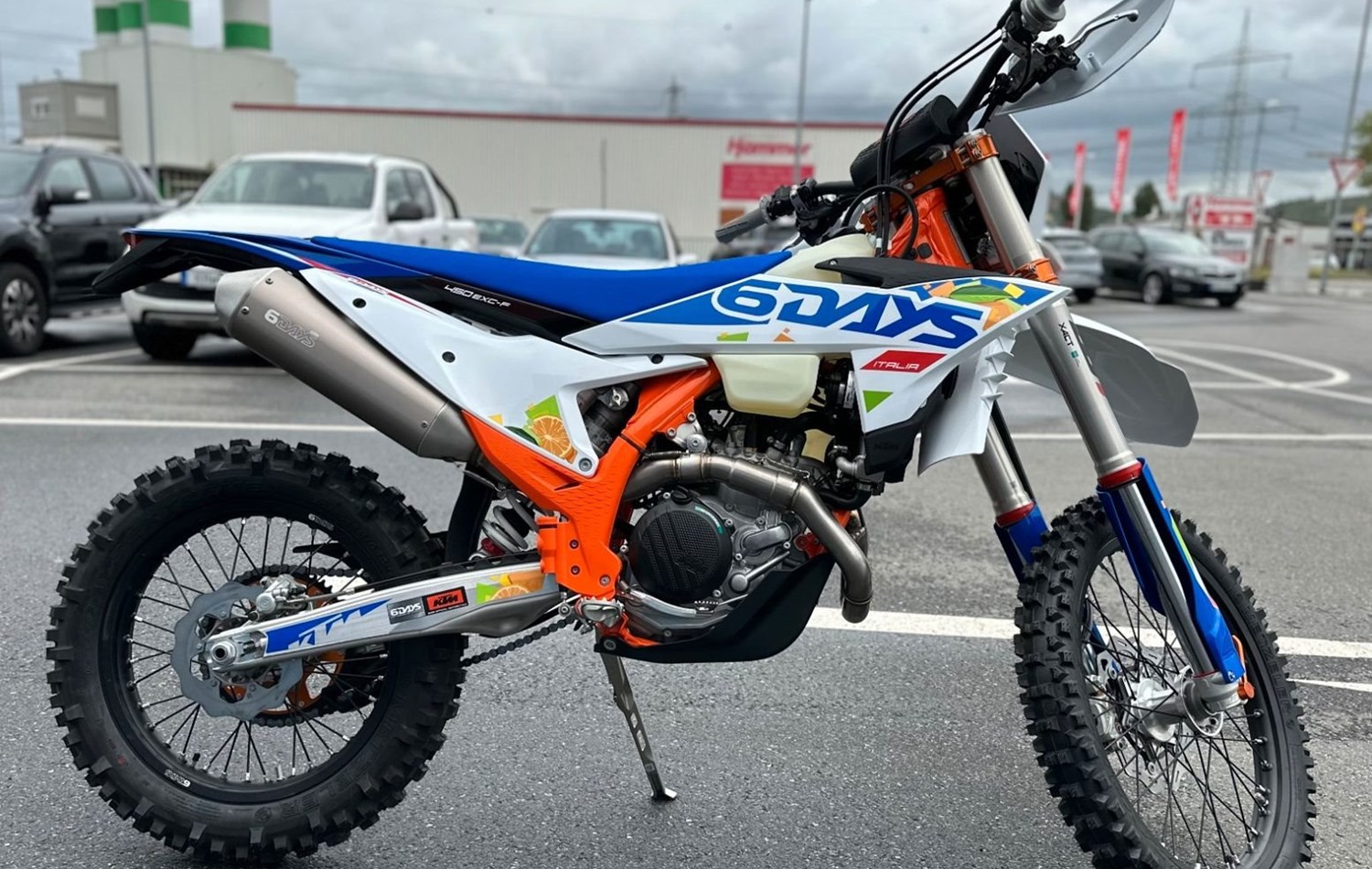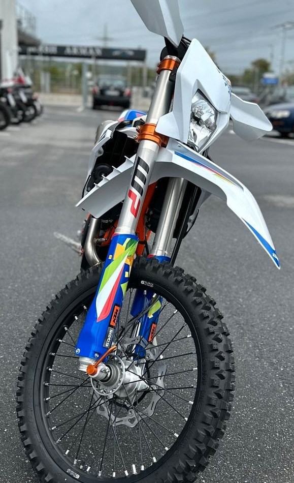 Die KTM 450 EXC-F 6DAYS braucht in Enduro-Kreisen kaum vorgestellt zu werden. Starke Leistung, unübertroffene Agilität und jede Menge Drehmoment machen diese extreme READY TO RACE Enduro-Waffe zum Spitzenreiter in jedem Offroad-Kampf. Die KTM EXC 6DAYS RANGE bietet einen leichten Rahmen, eine geschlossene Cartridge-Federung und eine Reihe intelligenter elektronischer Komponenten für das Paddock:* ORANGEFARBENE ELOXIERTE CNC-GEFRÄSTE GABELBRÜCKEN