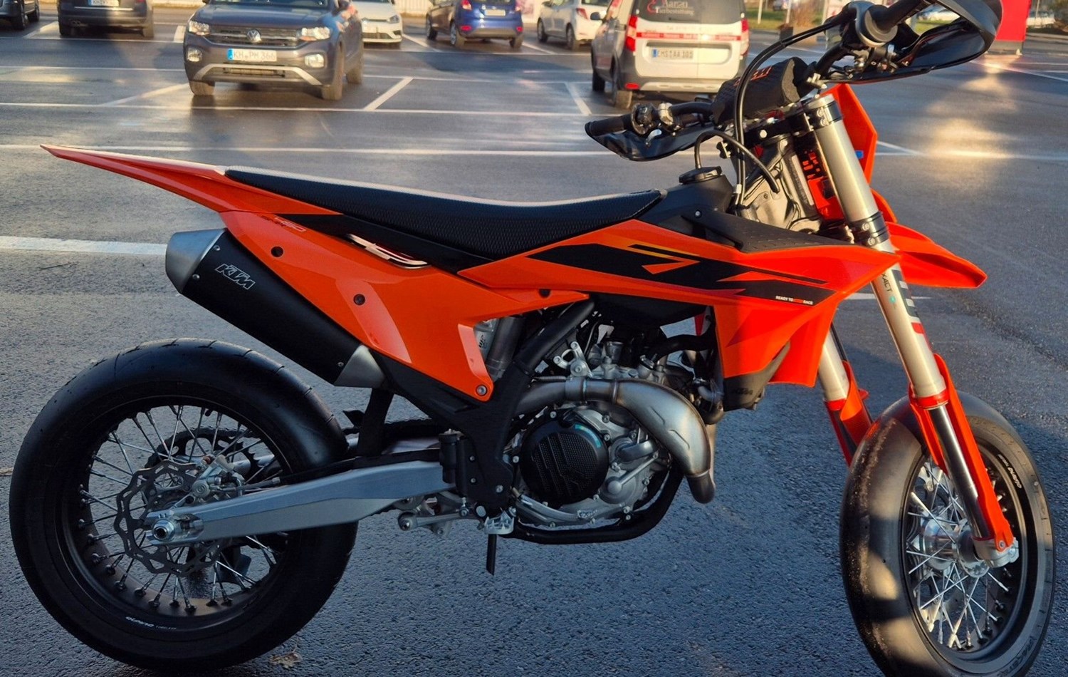 Die KTM 450 SMR 2025 ist das einzige Bike, das alle Aspekte des Motorradsports abdeckt. Sie greift die Vorteile der siegreichen KTM 450 SX-F auf und macht sie mit Rennslicks, starken Bremsen und einer erstklassigen Federung fit für den Asphalt. Das ist READY TO RACE in Reinform.