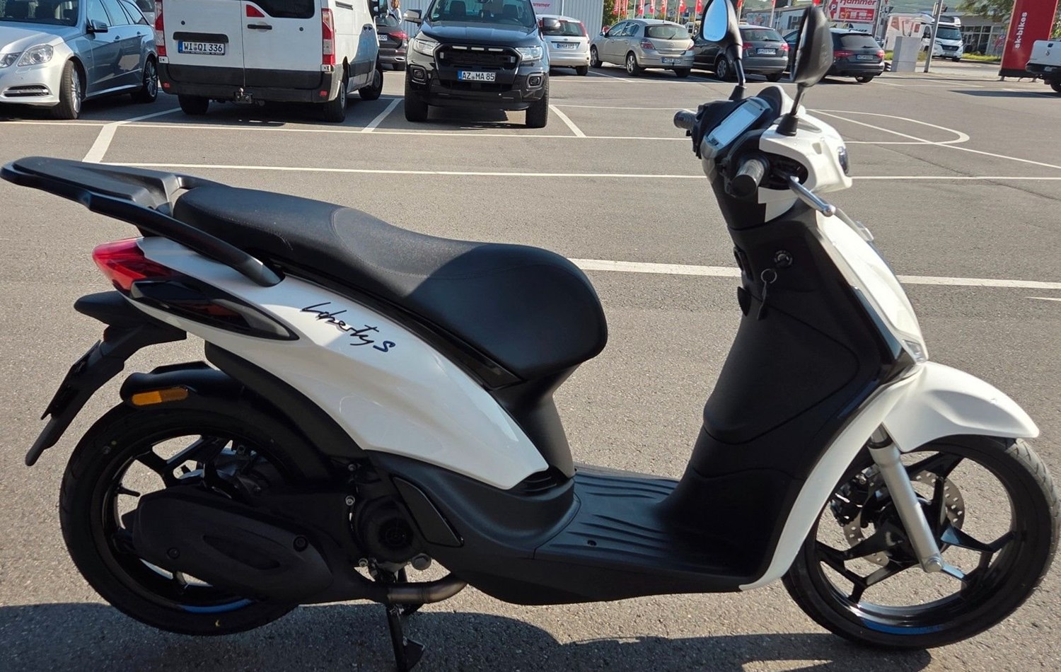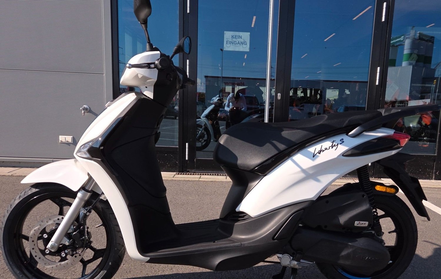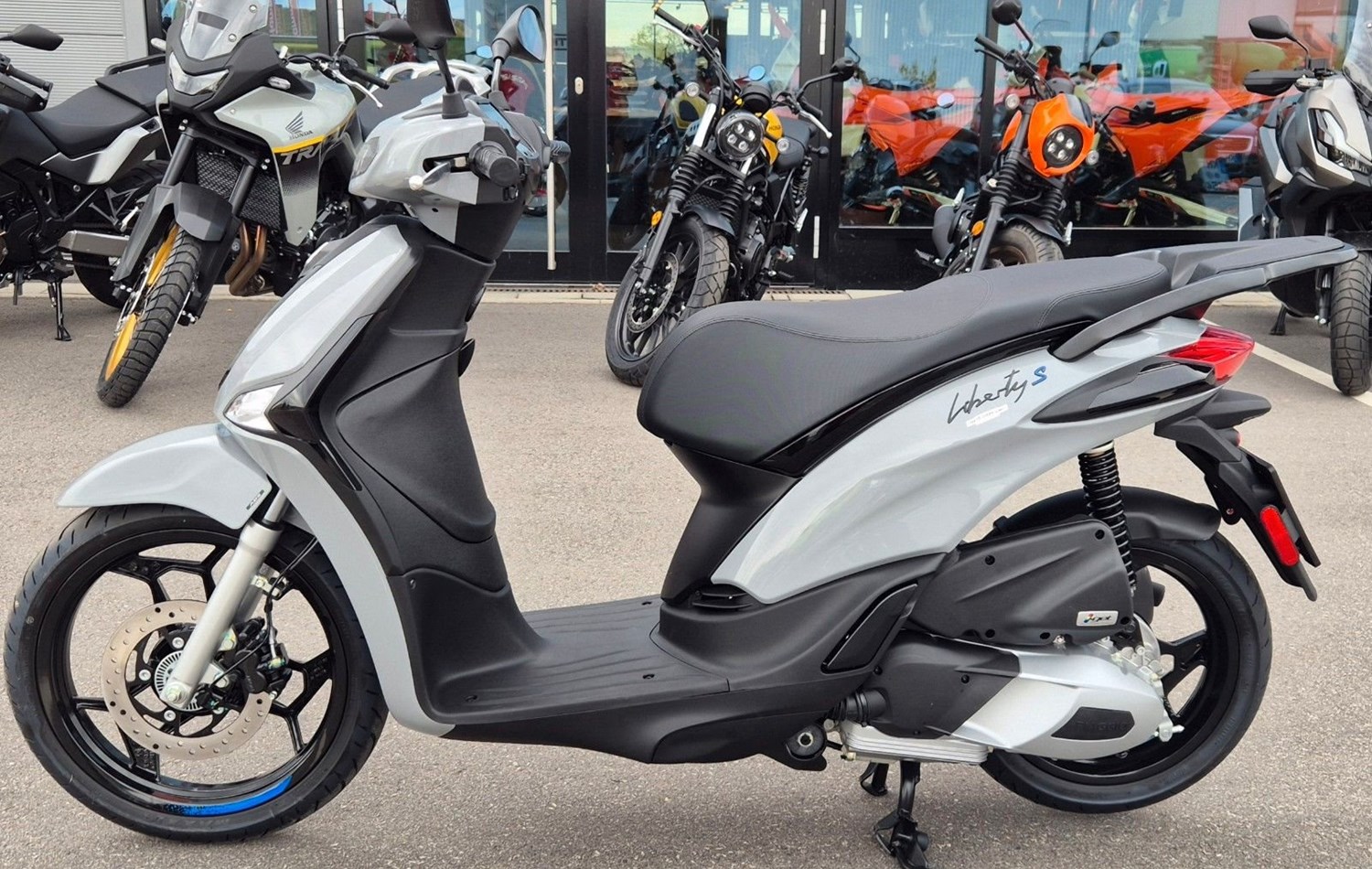 Der smarte Liberty 50 S ist die S-Klasse der kleinen Liberty-Modelle. Die roten Steppnähte der Sitzbank, schwarze Felgen mit Diamond Cut, schwarze Spiegel und die Gepäckbrücke geben ihm eine sportlich-elegante Note. Sein Herz, der kraftvolle 50 cm i-get-Viertaktmotor mit modernster 3-Ventil-Technik und elektronischer Benzineispritzung überzeugt mit Leistung, Zuverlässigkeit und geringem Verbrauch.