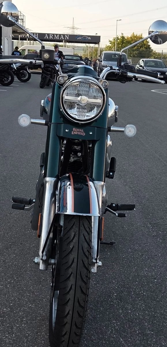 Zeitloser Klassiker. Die neue Classic 350 verkörpert gleicherweise Tradition und die Handwerkskunst der Vergangenheit, wie auch die Wiedergeburt durch die neue J Plattform. Inspiriert vom Nachkriegsmodell G2, das erstmals im Jahre 2008 entstand, schafft es die Classic 350 im Jahr 2021 weiterhin zeitlos ästethisch zu sein. Die geschwungenen Kotflügel und der tropfenförmige Kraftstofftank, die charakteristischen Kassettenscheinwerfer, die einzigartige Lackierung und der unverwechselbare Klang der aus dem Auspuff ertönt harmonieren in sich und machen dieses Meisterwerk zu dem was es ist - eine zeitlose Royal Enfield Classic. Elegant, mit einem glänzenden Finish, das eine außergewöhnliche Kontrusktion ziert, strahlt sie unübertroffene Schönheit und Qualität aus, die die Zeit überdauert.* Für eine Besichtigung oder Probefahrt kontaktieren Sie uns gerne.