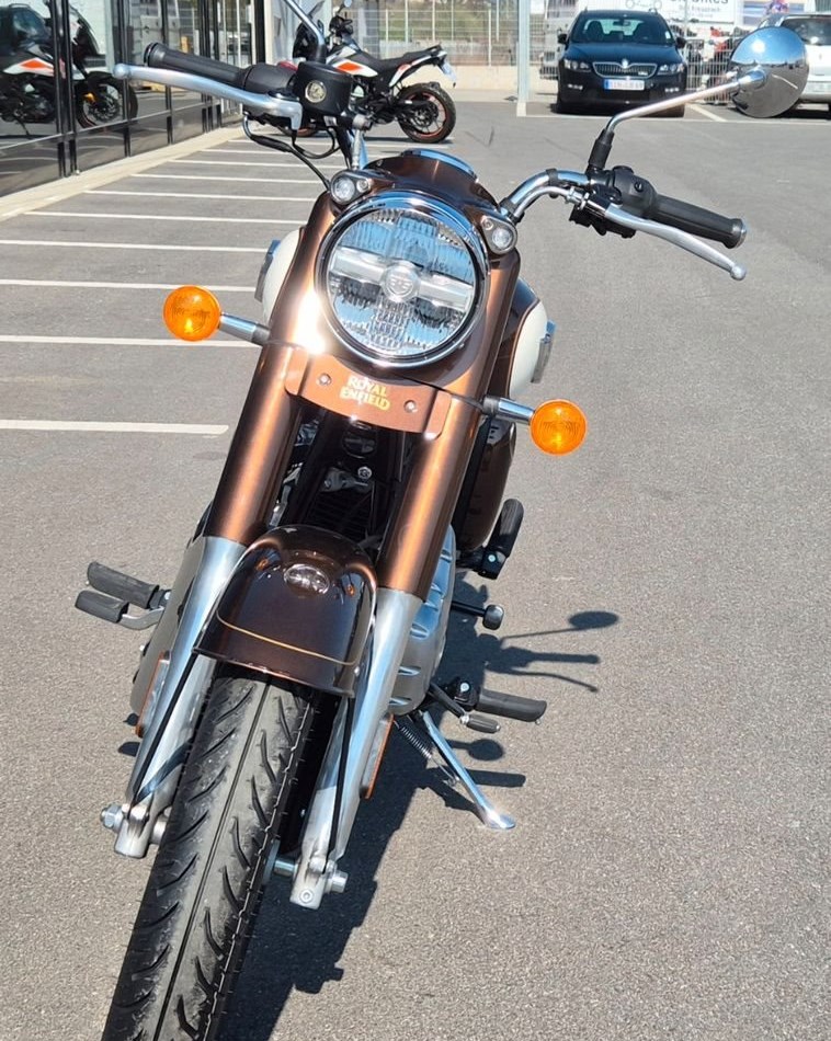 Zeitloser Klassiker. Die neue Classic 350 verkörpert gleicherweise Tradition und die Handwerkskunst der Vergangenheit, wie auch die Wiedergeburt durch die neue J Plattform. Inspiriert vom Nachkriegsmodell G2, das erstmals im Jahre 2008 entstand, schafft es die Classic 350 im Jahr 2021 weiterhin zeitlos ästethisch zu sein. Die geschwungenen Kotflügel und der tropfenförmige Kraftstofftank, die charakteristischen Kassettenscheinwerfer, die einzigartige Lackierung und der unverwechselbare Klang der aus dem Auspuff ertönt harmonieren in sich und machen dieses Meisterwerk zu dem was es ist - eine zeitlose Royal Enfield Classic. Elegant, mit einem glänzenden Finish, das eine außergewöhnliche Kontrusktion ziert, strahlt sie unübertroffene Schönheit und Qualität aus, die die Zeit überdauert.