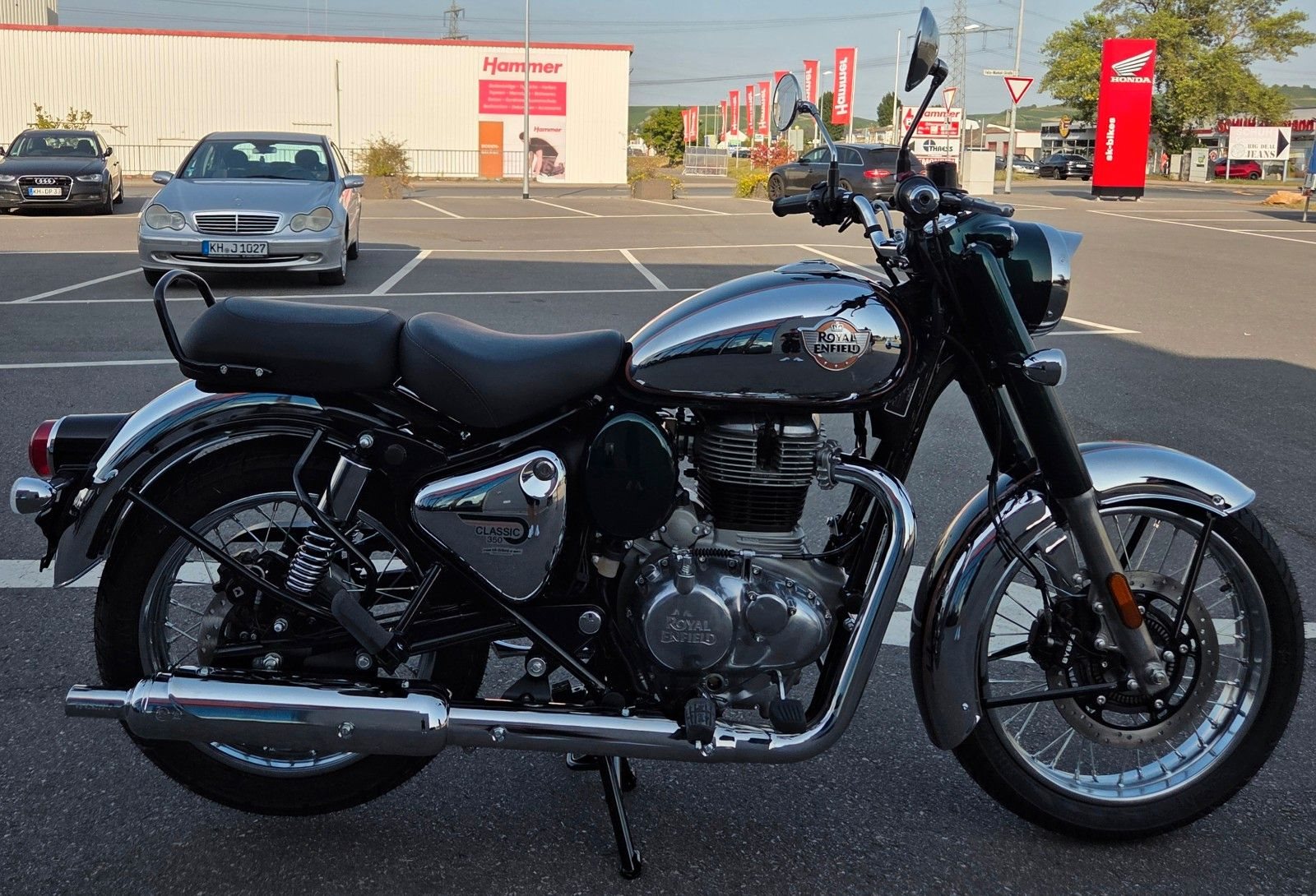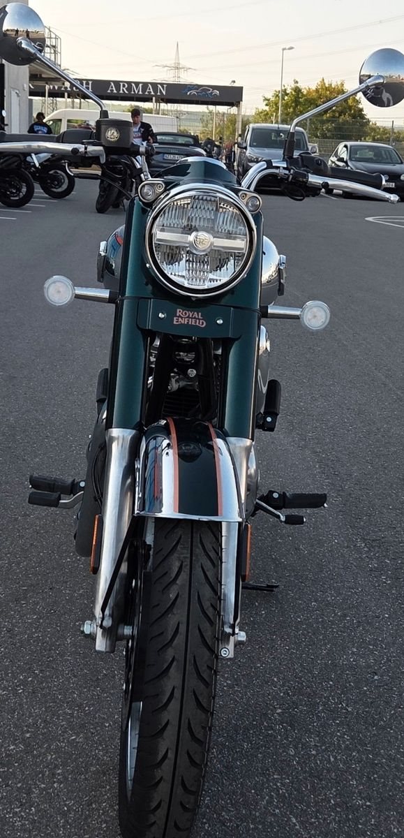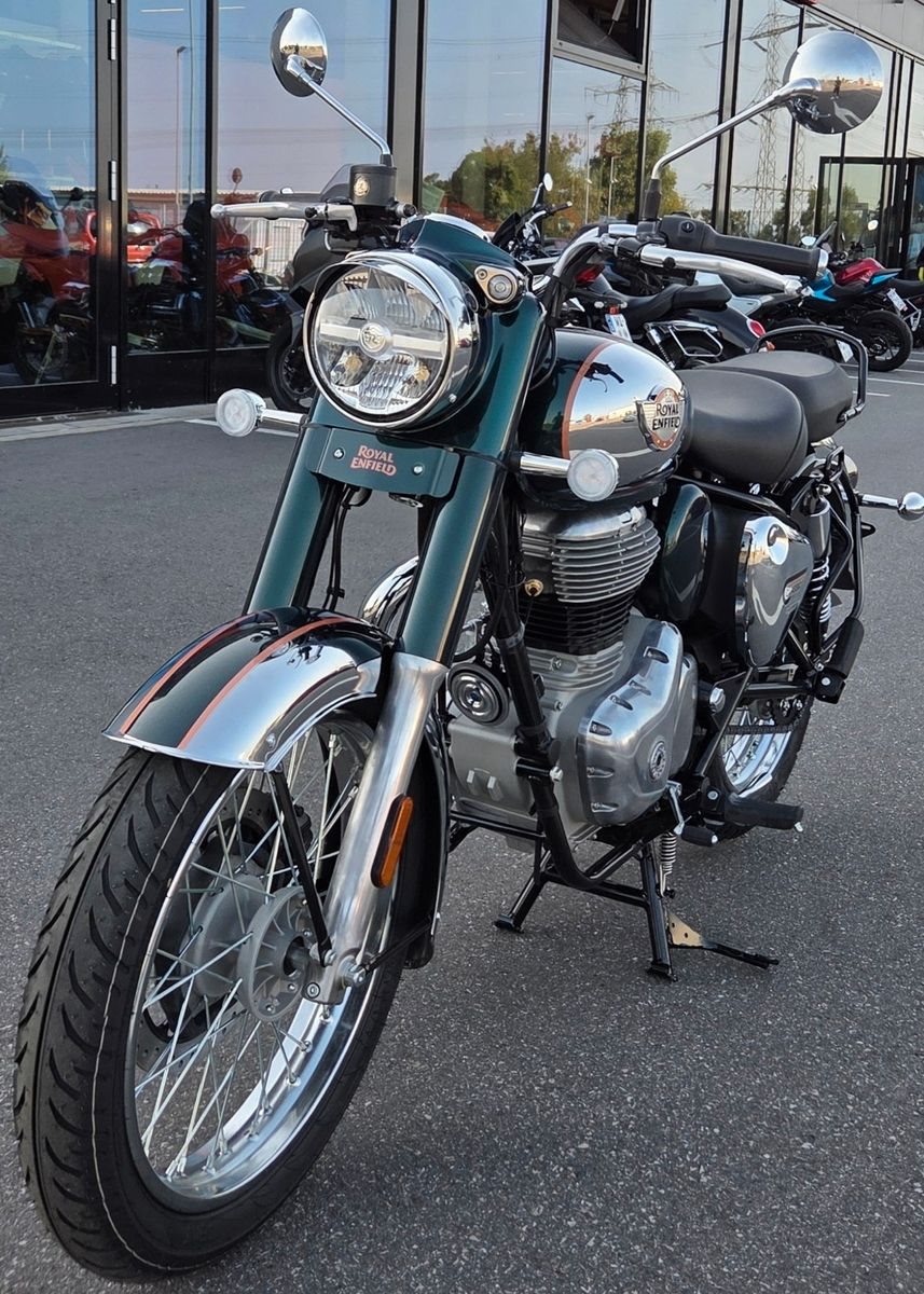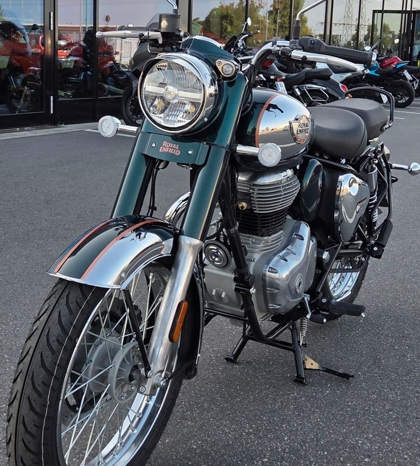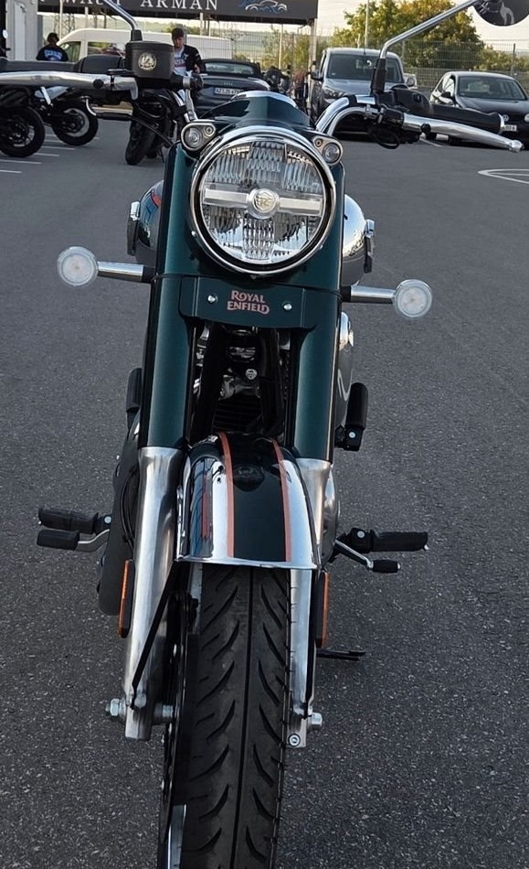 Zeitloser Klassiker. Die neue Classic 350 verkörpert gleicherweise Tradition und die Handwerkskunst der Vergangenheit, wie auch die Wiedergeburt durch die neue J Plattform. Inspiriert vom Nachkriegsmodell G2, das erstmals im Jahre 2008 entstand, schafft es die Classic 350 im Jahr 2021 weiterhin zeitlos ästethisch zu sein. Die geschwungenen Kotflügel und der tropfenförmige Kraftstofftank, die charakteristischen Kassettenscheinwerfer, die einzigartige Lackierung und der unverwechselbare Klang der aus dem Auspuff ertönt harmonieren in sich und machen dieses Meisterwerk zu dem was es ist - eine zeitlose Royal Enfield Classic. Elegant, mit einem glänzenden Finish, das eine außergewöhnliche Kontrusktion ziert, strahlt sie unübertroffene Schönheit und Qualität aus, die die Zeit überdauert.