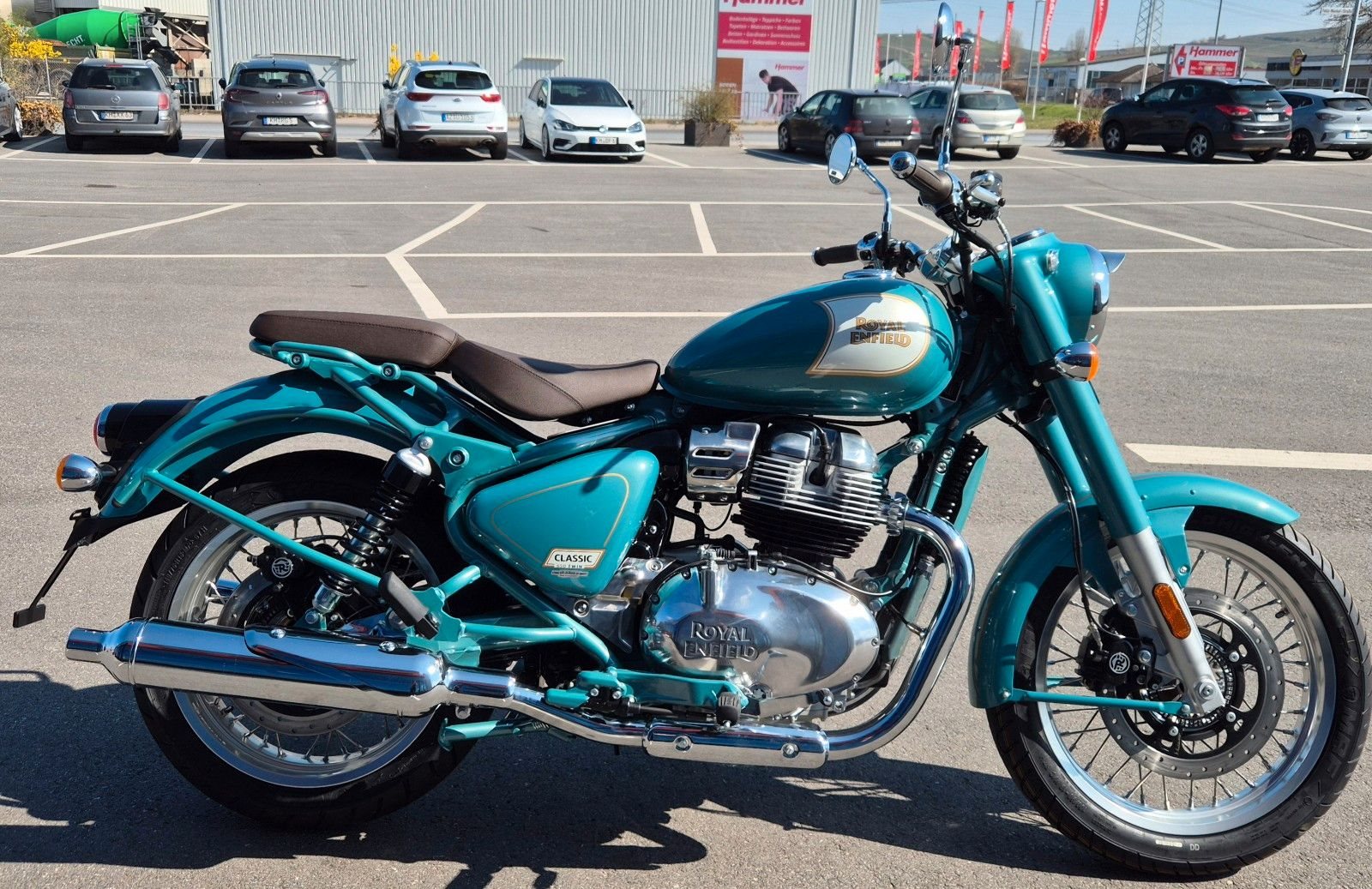 Royal Enfields beliebter Parallel-Twin-Motor mit 649 cm3 ist in der Classic 650 in überarbeiteter Form zu finden. Er überzeugt mit viel Ruhe und Gelassenheit, legt aber bei Bedarf auch eine unerreicht sportliche Leistung an den Tag. * Für eine Besichtigung oder Probefahrt kontaktieren Sie uns gerne.