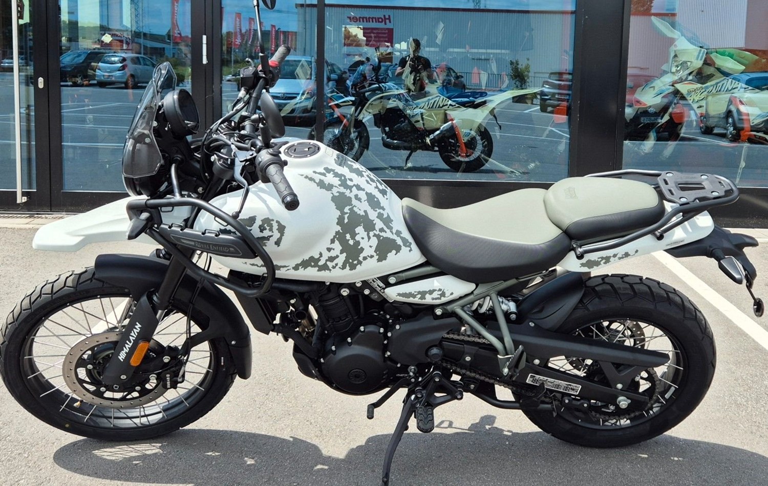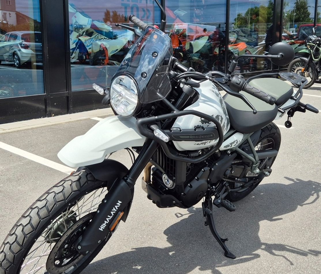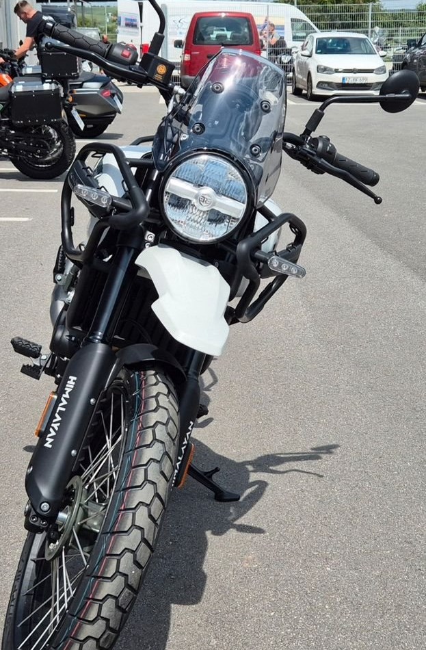 PERFEKT FÜR JEDES ABENTEUER Der beste Motorradrahmen ist einer, der sich dezent im Hintergrund hält. Von der flexiblen Bereifung mit 21 Zoll großem Vorderrad und 17 Zoll großem Hinterrad über trittsichere Enduro-Fußrasten bis hin zu ihrem breiten Lenker - die Himalayan ist für alles gerüstet, auf der Straße und im Gelände. Die schlanke Sitzbank und der schmale Tank sorgen dafür, dass beide Füße fest auf dem Boden zu stehen kommen.Für eine Besichtigung oder Probefahrt kontaktieren Sie uns gerne.