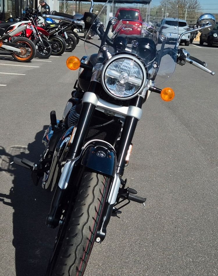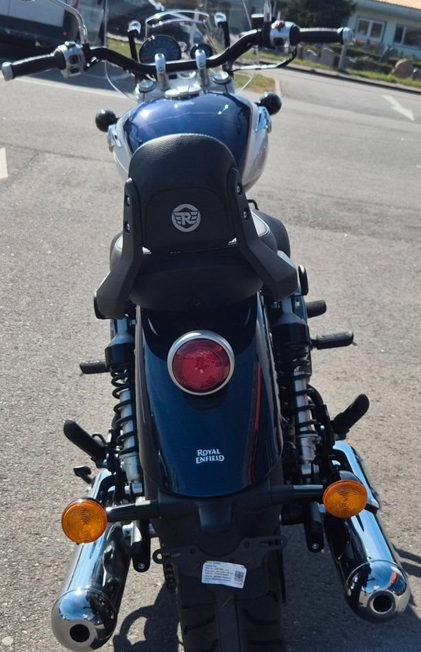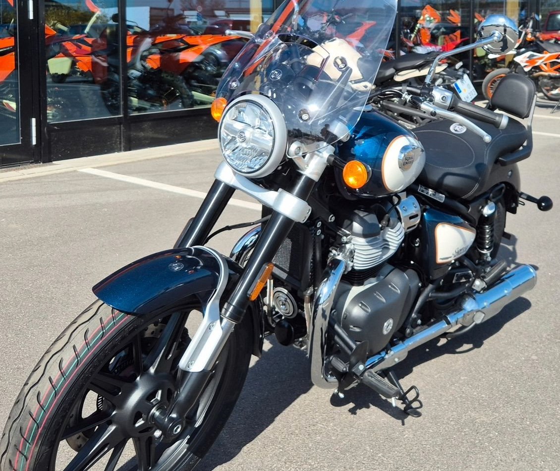 Sissybar, Tourenscheibe, Touringsitzbank Das Herzstück der Super Meteor 650 ist unser ikonischer Parallel-Twin-Motor, der nahtlose Gangwechsel, eine starke Beschleunigung im unteren Drehzahlbereich und eine ruckfreie, gleichmäßige Gasannahme gewährleistet.