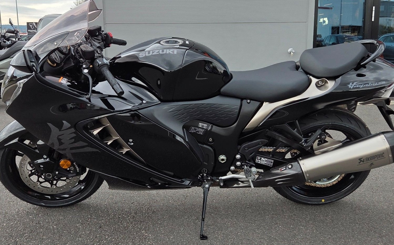 Ein Meisterwerk aus Kraft, Aerodynamik und purem Fahrspaß. In der Power Edition setzt die Hayabusa noch einen drauf: Der Akrapovic Slip-On Endschalldämpfer verleiht ihr einen tiefen, kraftvollen Sound, der Gänsehaut garantiert. Ein Klang, der die Straße vibrieren lässt und dein Herz schneller schlagen lässt.