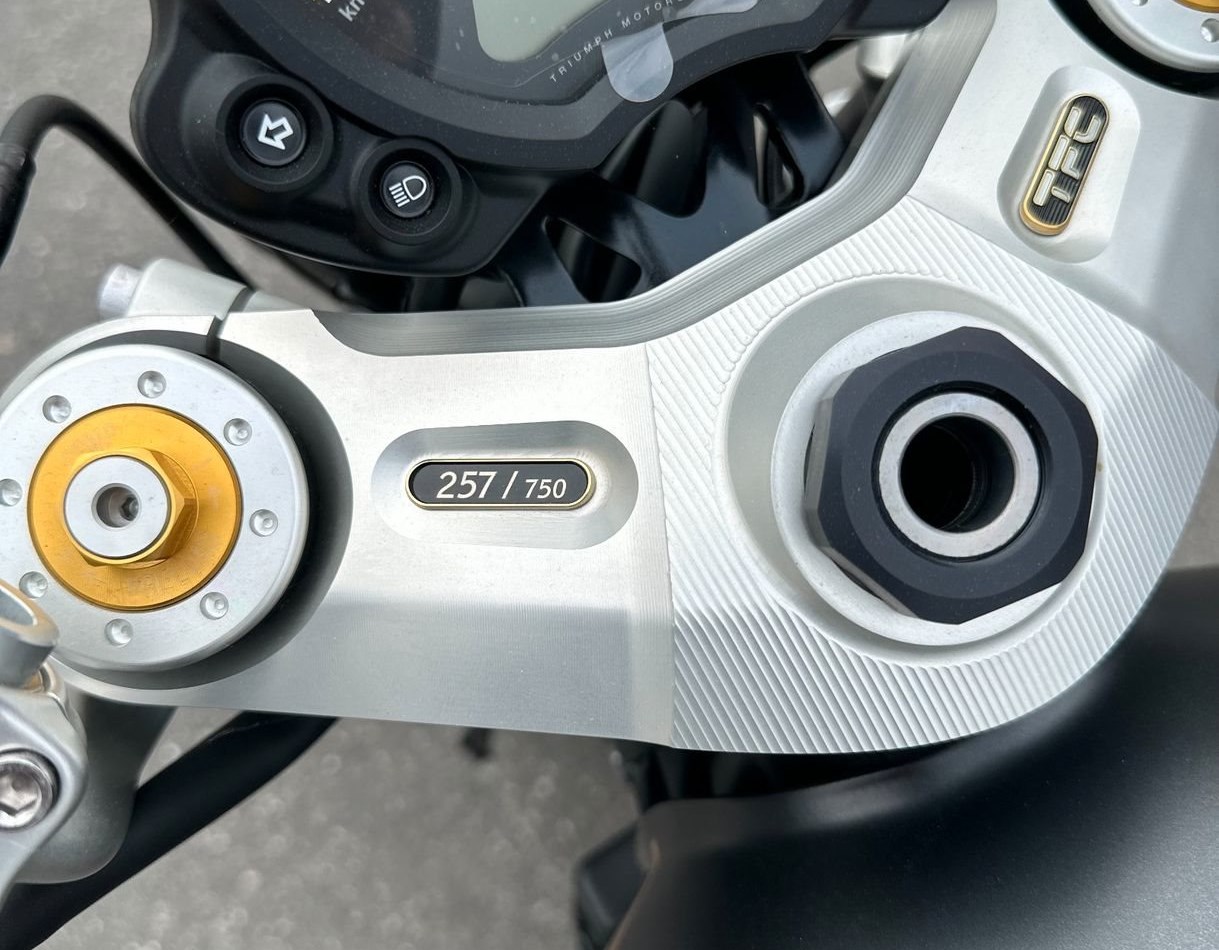 Auf 750 Einheiten limitiertes Sondermodell. Nr. 257 von 750, in Handarbeit in England gefertigtArrow Auspuff, Bullet LED Blinker vo./hi., Carbon Sietendeckel, Öhlins Fahrwerk Für eine Besichtigung oder Probefahrt kontaktieren Sie uns gerne.