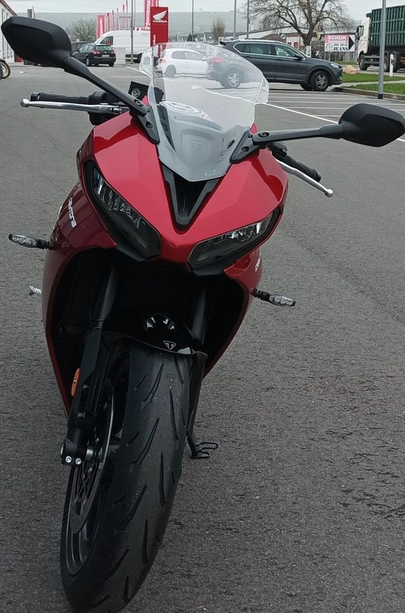 KRAFTVOLLE TRIPLE-POWER Kraftvolles Drehmoment bei niedriger Drehzahl, aufregende Leistungsentfaltung im mittleren Drehzahlbereich und fantastische Performance mit atemberaubendem Sound bei hoher Drehzahl - der charakteristische Dreizylindermotor der Daytona vereint das Beste aus allen Welten.