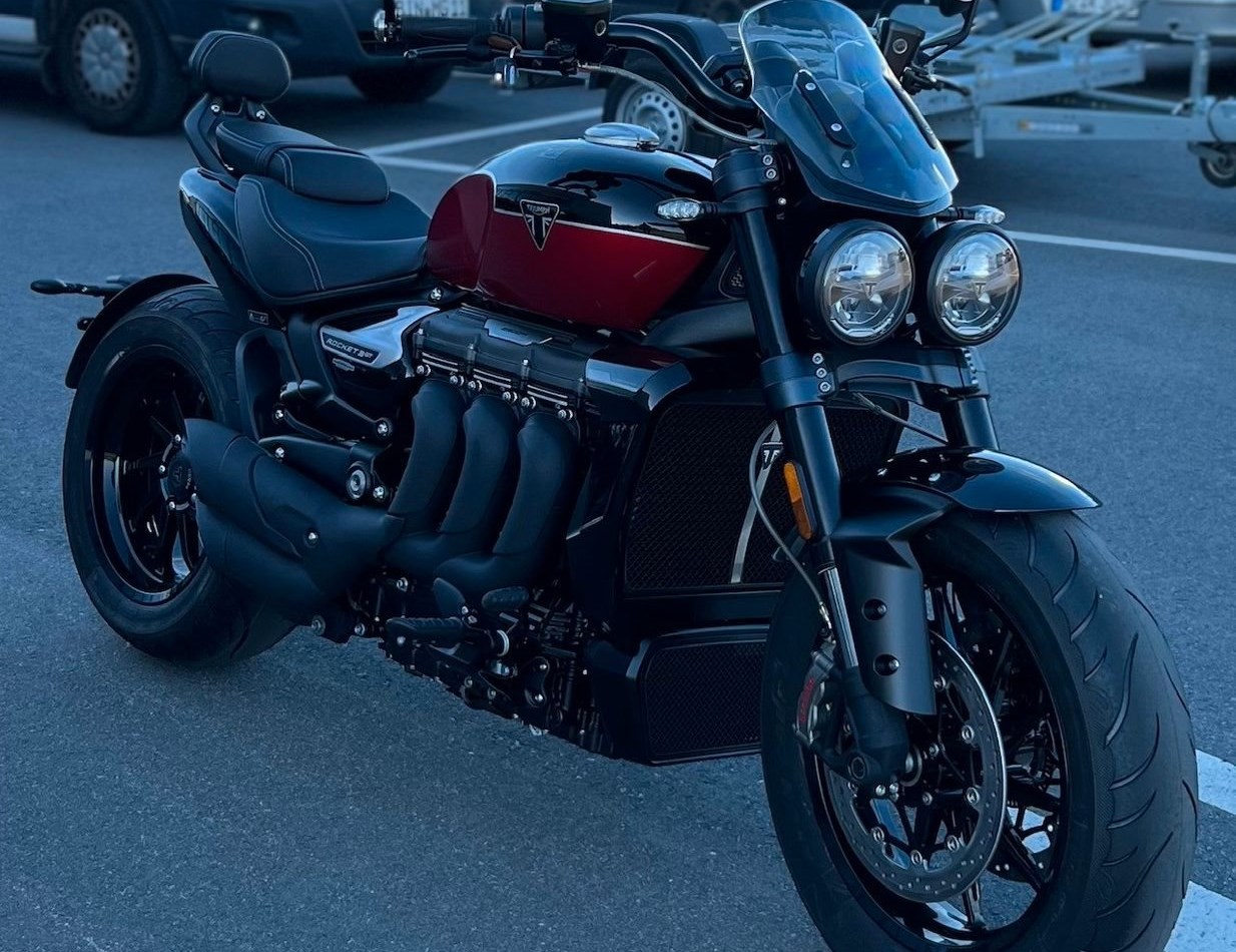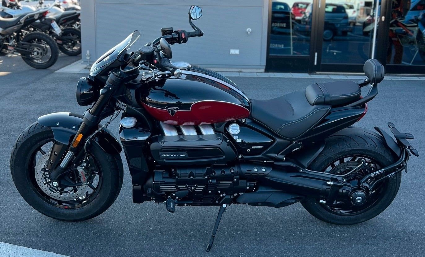 Sapphire Black / Carnival Red, Matt Sapphire Black and Satin Granite, Granite / Sapphire Black, Matt Sapphire Black / Satin Pacific Blue 4 Jahre Triumph HerstellergarantieDER PERFEKTE STURM Der ultimative Power-Roadster mit noch mehr Ausstrahlung und rekordverdächtiger Leistung.Muskulöse Präsenz und makelloses Design verschmelzen mit der beeindruckenden Leistung des größten Serienmotorradmotors der Welt. Die unvergleichliche Leistung, das grandiose Fahrverhalten und die atemberaubende Ausstrahlung der neuen Rocket 3 vereinen sich zum ultimativen Fahrerlebnis.ATEMBERAUBENDE PERFORMANCE Explosive Beschleunigung. Das rekordverdächtige Drehmoment des Dreizylindermotors mit 2.458 cm Hubraum sorgt für maximalen Fahrspaß.BEHERRSCHBARE LEISTUNG Kultiviert, aber ungezügelt, mit einem Handling und einer dynamischen Agilität, die man angesichts der einschüchternden Präsenz der Rocket Storm nicht erwarten würde.PRÄSENZ UND ELEGANZ Ein echtes Kraftpaket mit makellosem Design und ausgesprochener Liebe zum Detail.Für eine Besichtigung oder Probefahrt kontaktieren Sie uns gerne.