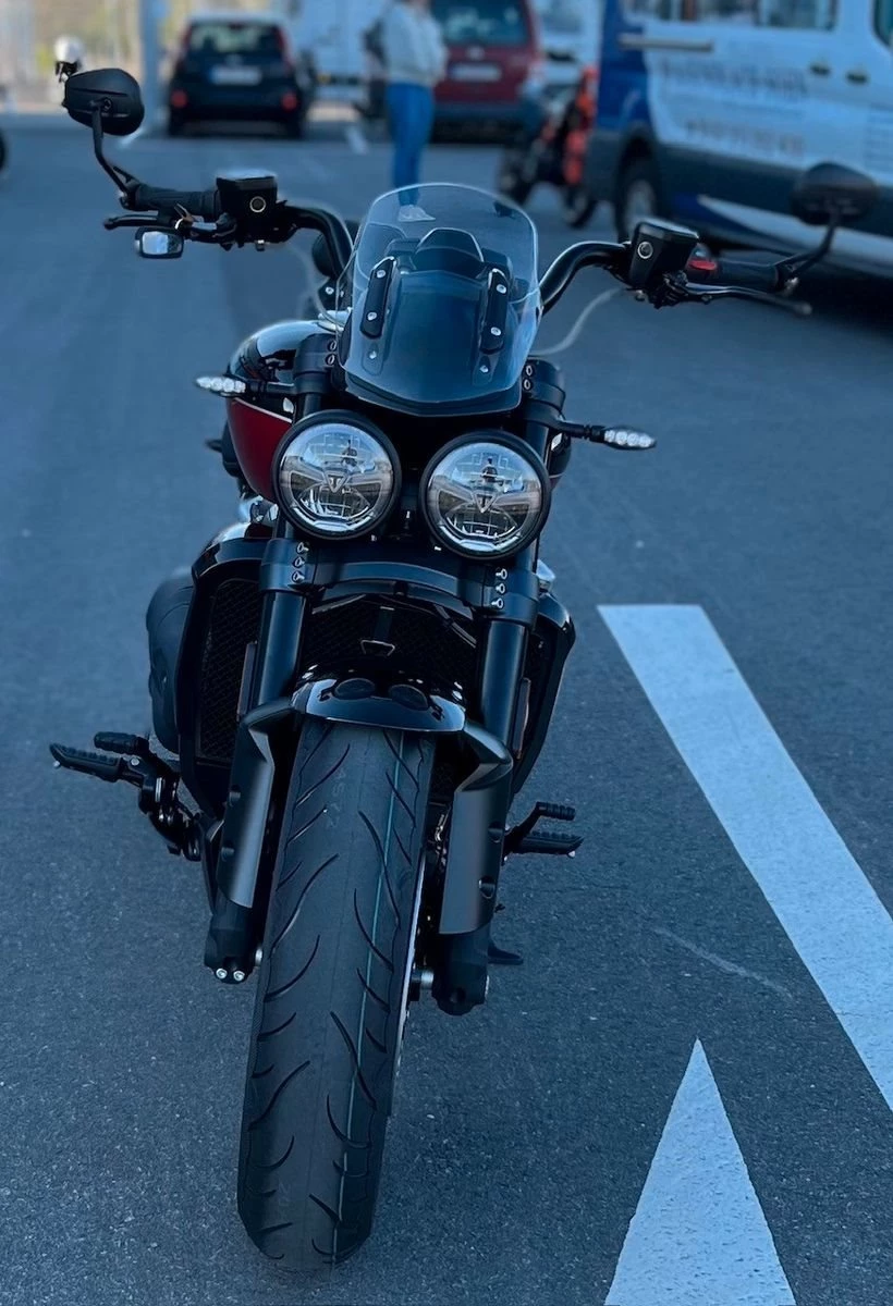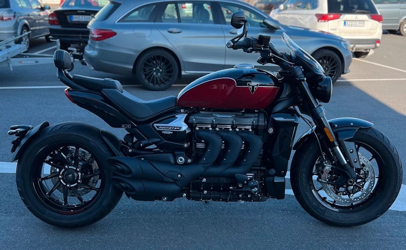 Sapphire Black / Carnival Red, Matt Sapphire Black and Satin Granite, Granite / Sapphire Black, Matt Sapphire Black / Satin Pacific Blue 4 Jahre Triumph HerstellergarantieDER PERFEKTE STURM Der ultimative Power-Roadster mit noch mehr Ausstrahlung und rekordverdächtiger Leistung.Muskulöse Präsenz und makelloses Design verschmelzen mit der beeindruckenden Leistung des größten Serienmotorradmotors der Welt. Die unvergleichliche Leistung, das grandiose Fahrverhalten und die atemberaubende Ausstrahlung der neuen Rocket 3 vereinen sich zum ultimativen Fahrerlebnis.ATEMBERAUBENDE PERFORMANCE Explosive Beschleunigung. Das rekordverdächtige Drehmoment des Dreizylindermotors mit 2.458 cm Hubraum sorgt für maximalen Fahrspaß.BEHERRSCHBARE LEISTUNG Kultiviert, aber ungezügelt, mit einem Handling und einer dynamischen Agilität, die man angesichts der einschüchternden Präsenz der Rocket Storm nicht erwarten würde.PRÄSENZ UND ELEGANZ Ein echtes Kraftpaket mit makellosem Design und ausgesprochener Liebe zum Detail.Für eine Besichtigung oder Probefahrt kontaktieren Sie uns gerne.