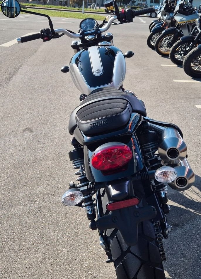 Das besondere Flair der Modern Classics von Triumph Die Modern Classics von Triumph verbinden einzigartiges Design mit erstklassiger Qualität und Technik. Jedes Motorrad wird mit Präzision und Liebe zum Detail gebaut - ein Erlebnis für Herz und Seele. Die neuen Icon Editions heben dieses Gefühl auf eine neue Ebene. Sie sind in exklusiven Farbvarianten erhältlich, die den einzigartigen Stil jedes Modells unterstreichen. Der auffällige Kontrast von Sapphire Black und Aluminium Silver sowie die hochwertige Gestaltung des goldenen Triumph-Schriftzugs unterstreichen die Präsenz jedes Motorrads. Zu den edlen Details gehören von Hand gezogene Zierstreifen entlang des Tanks und der Seitenverkleidungen. Zusätzlich betonen die unterschiedlichen Farbkombinationen die Silhouette und machen jede Fahrt zu einem fesselnden und atemberaubenden Erlebnis.