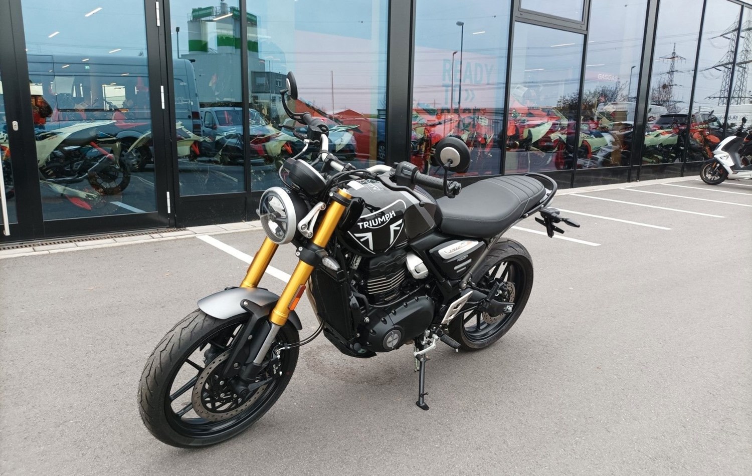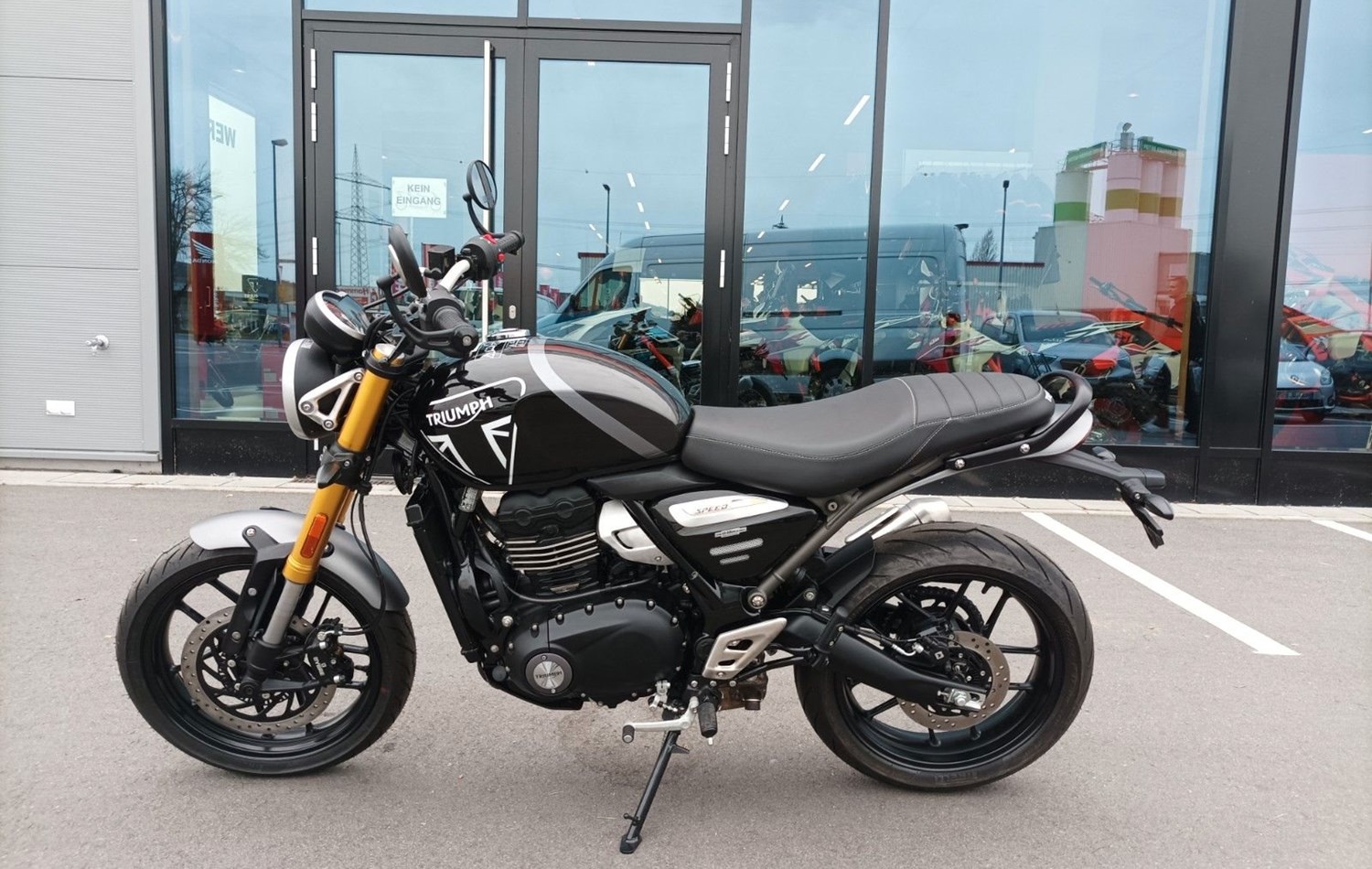 Der neue Einzylindermotor der TR-Serie wurde nach dem Vorbild legendärer Triumph-Motorräder aus der Vergangenheit entwickelt und mit modernsten Technologien ausgestattet, um eine voll nutzbare, charaktervolle Leistung mit spontanem Ansprechverhalten und erstklassiger Performance zu entfalten.Die Sitzposition ist neutral und vermittelt dabei ein mitreißendes Fahrerlebnis bei niedriger Sitzhöhe. In Kombination mit dem speziell abgestimmten Roadster-Fahrwerk, der hochwertigen Aufhängung und den erstklassigen Bremsen ergibt sich das für Triumph charakteristische, agile und souveräne Handling, mit dem Fahrer jeden Könnens die dynamische Performance der Speed 400 voll auskosten können.Die hervorragende Verarbeitung und die Liebe zum Detail, die jeden modernen Klassiker von Triumph auszeichnen, finden sich auch bei der Speed 400 wieder. Von den charakteristischen schwarz pulverbeschichteten Motorgehäusen bis hin zur satten Lackierung - die Speed 400 ist unverkennbar eine Triumph und ein echter moderner Klassiker.